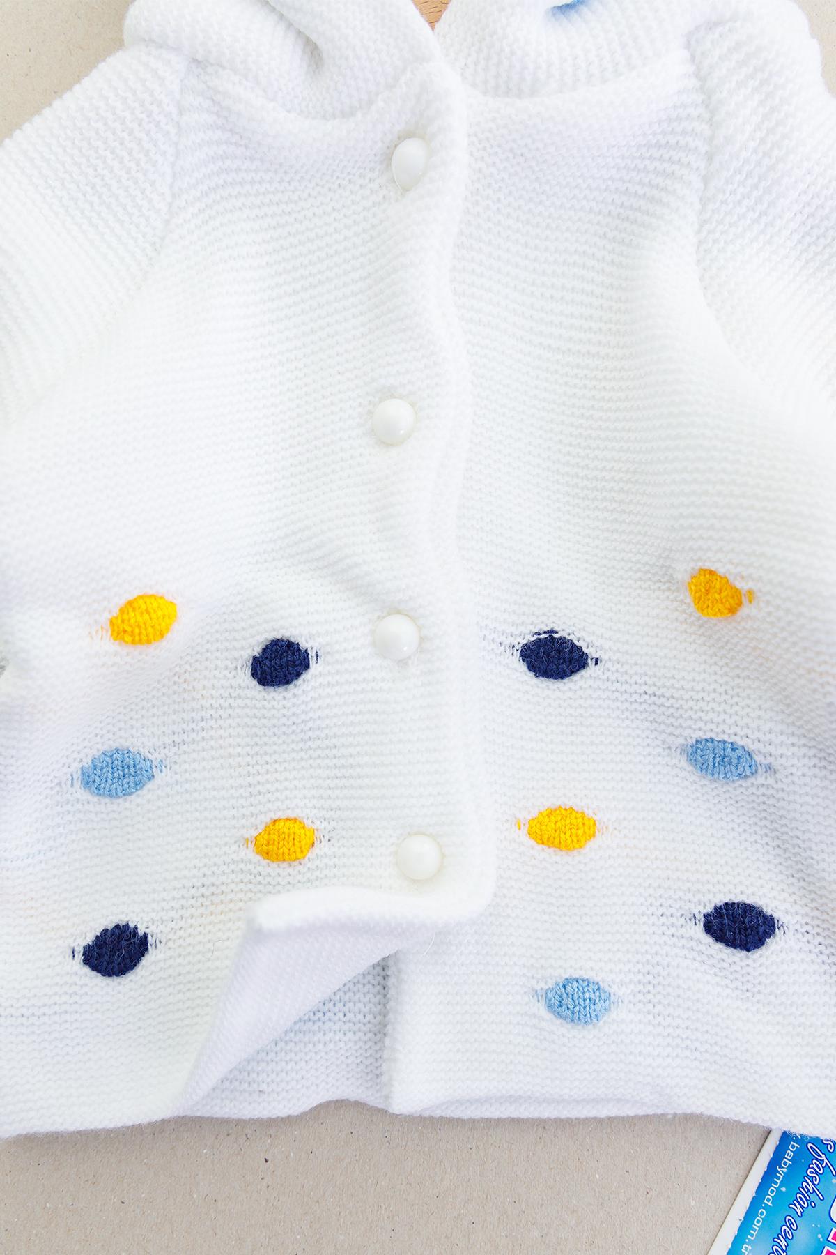- Hırkanın dış kısmı renkli puantiye örgü detaylıdır.