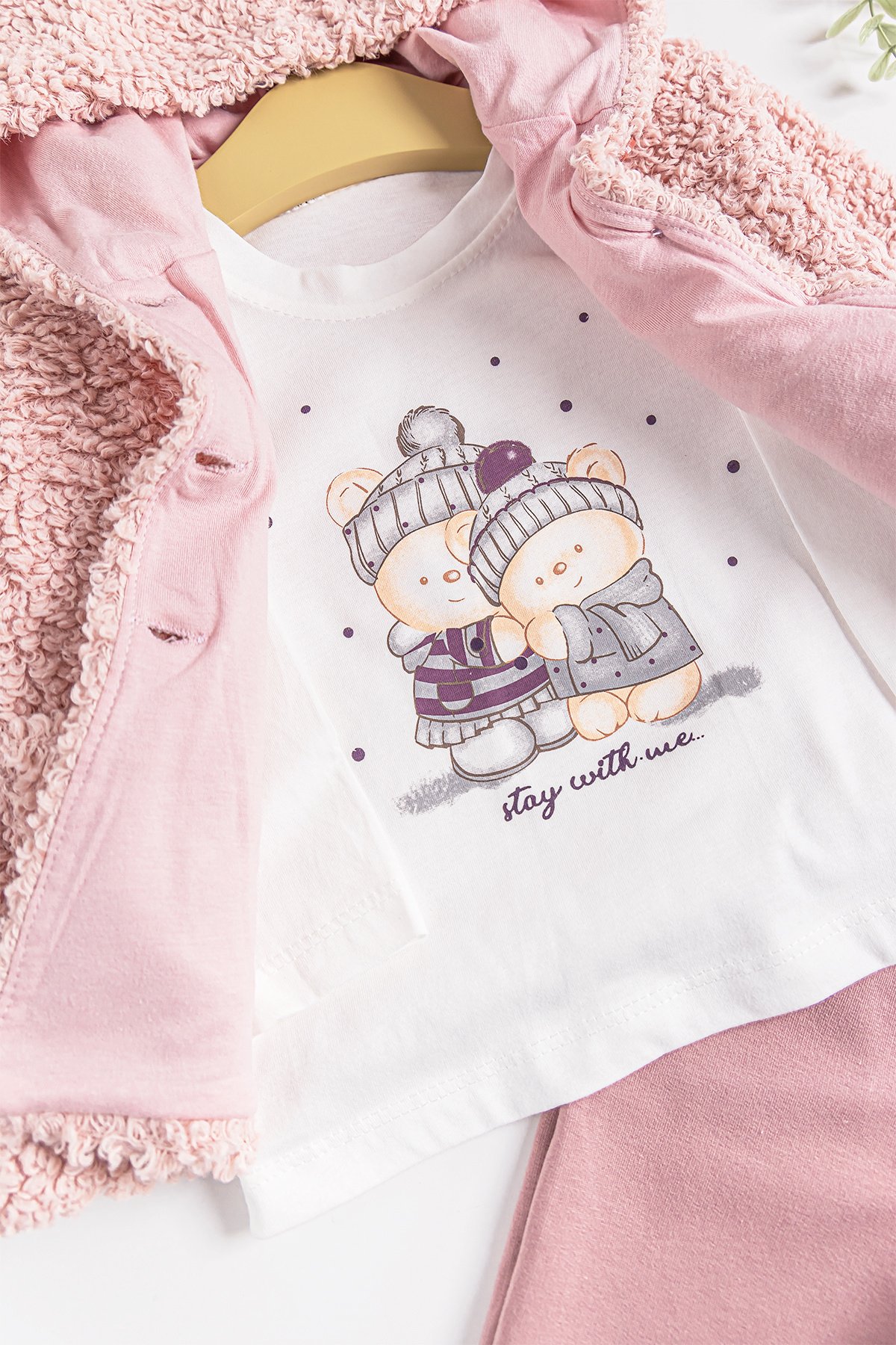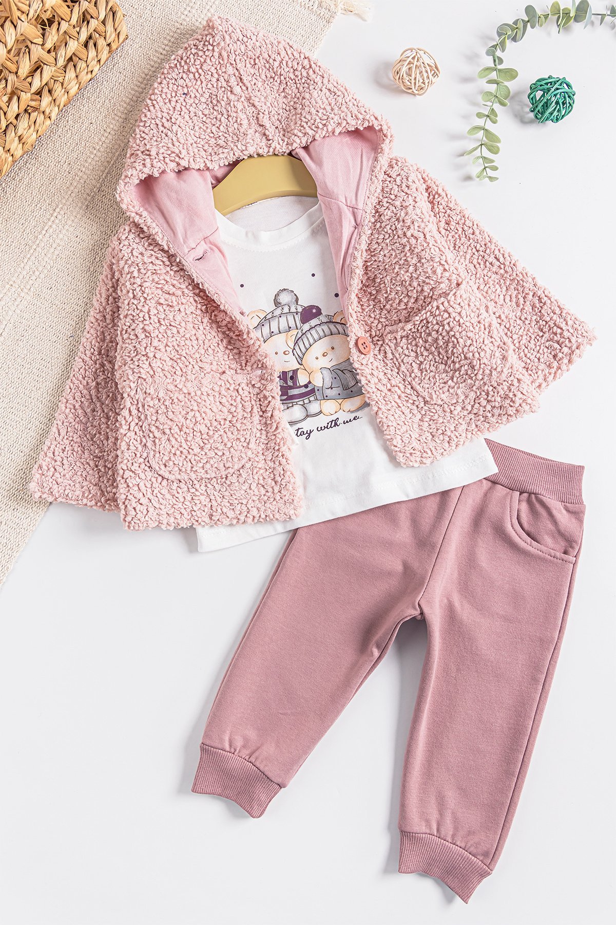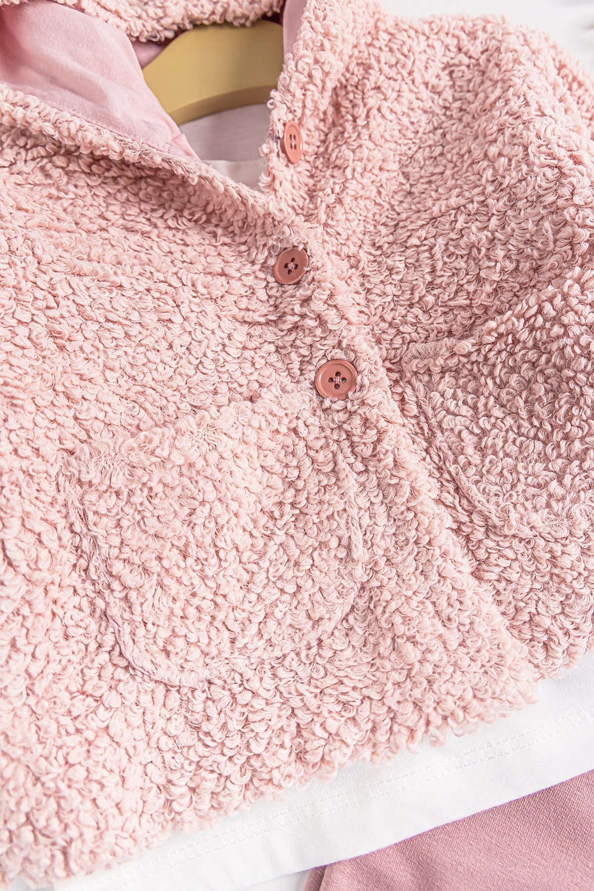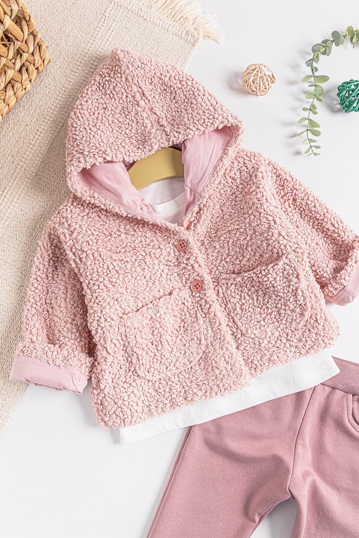 Kapüşonlu Hırkalı 3'lü Kız Bebek Takım