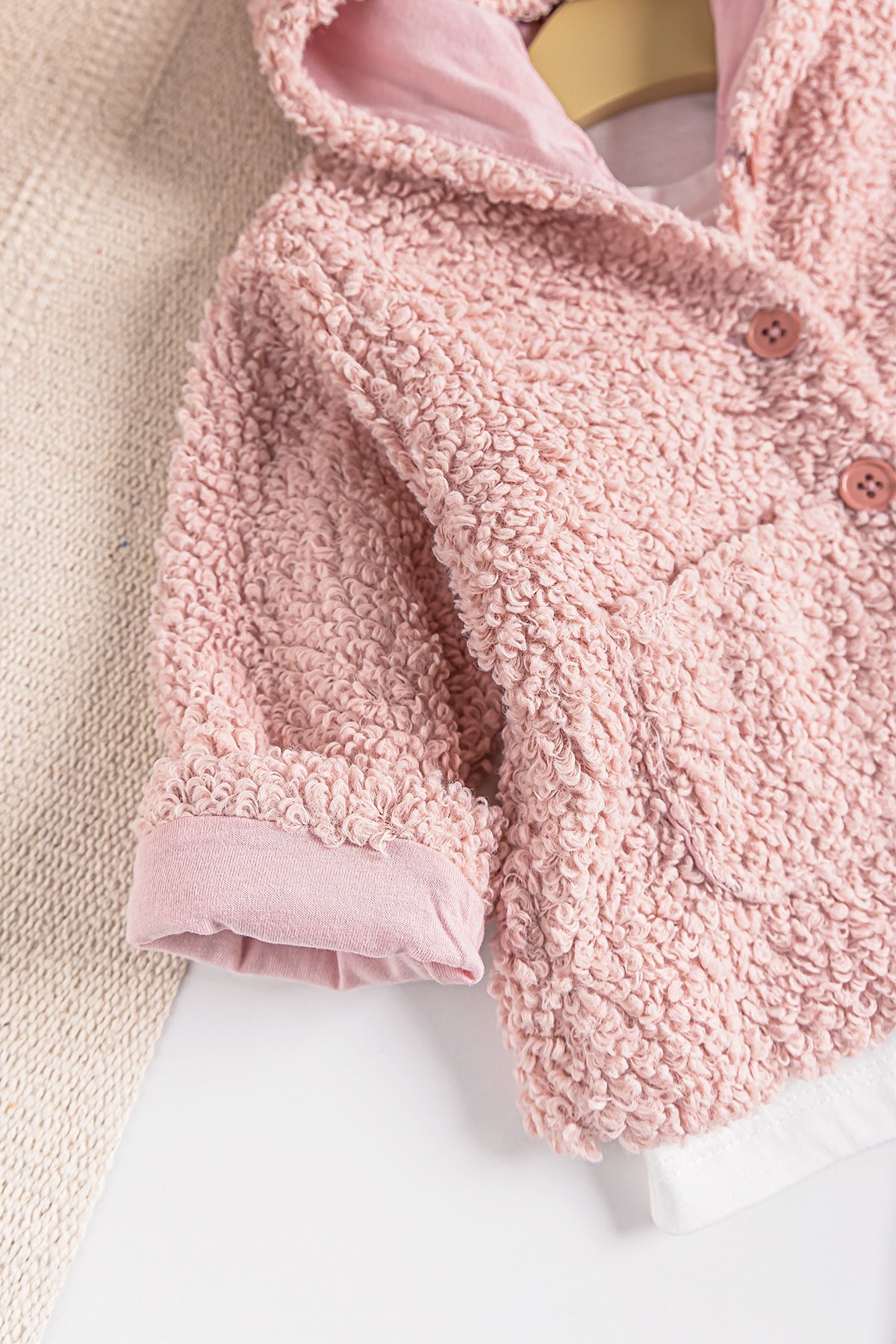 - Bebek kapüşonlu hırka buklet kumaşlıdır.