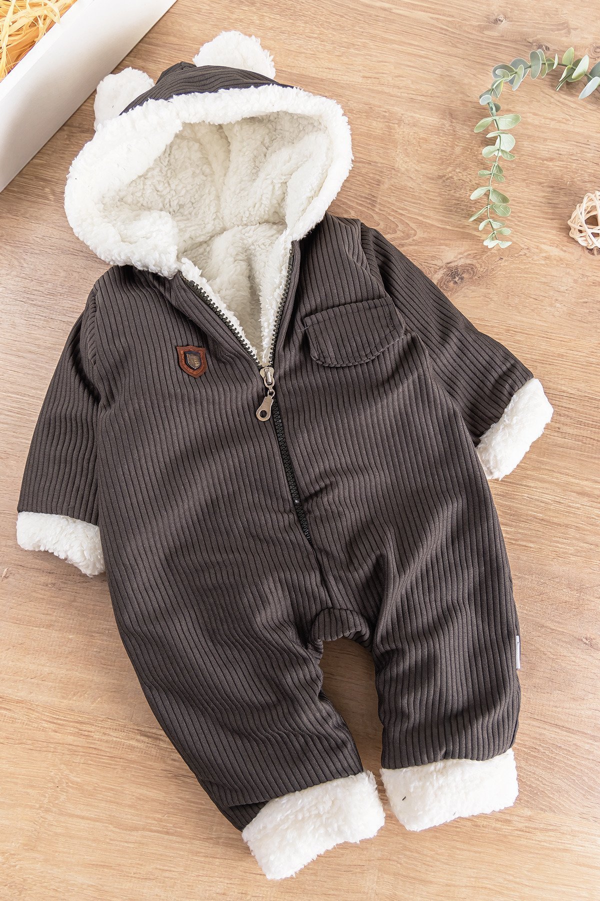 - Bebek tulumun kapüşon içi peluş astarlıdır.