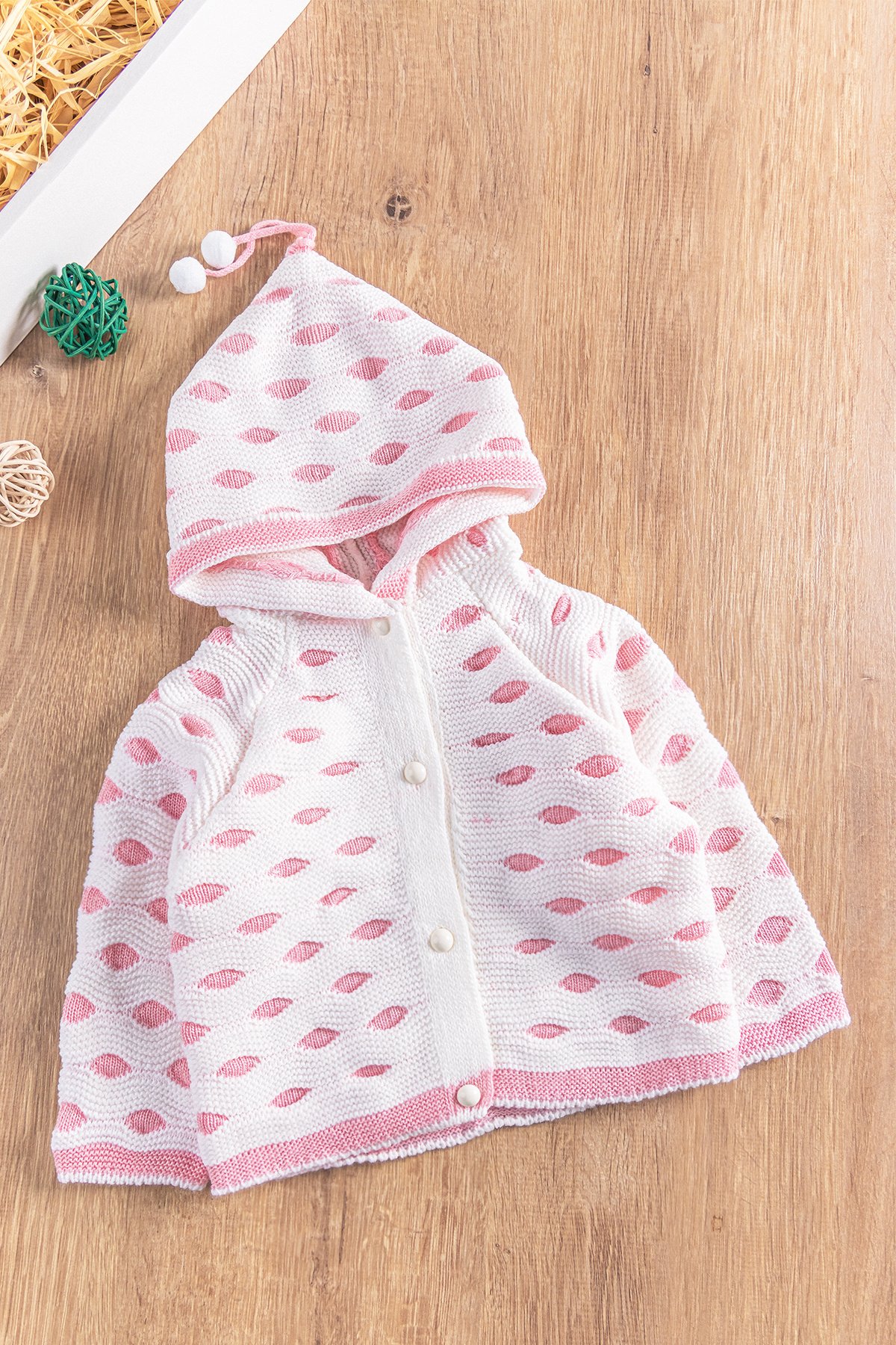 Kapüşonlu Puantiyeli Kız/Erkek Bebek Triko Hırka