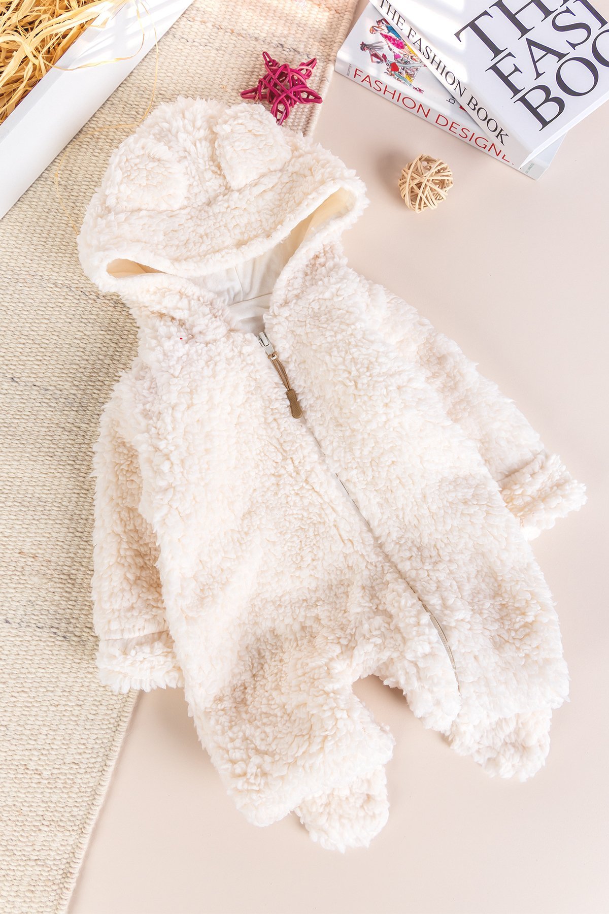 Kapüşonlu Welsoft Peluş Kışlık Kız/Erkek Bebek Tulum