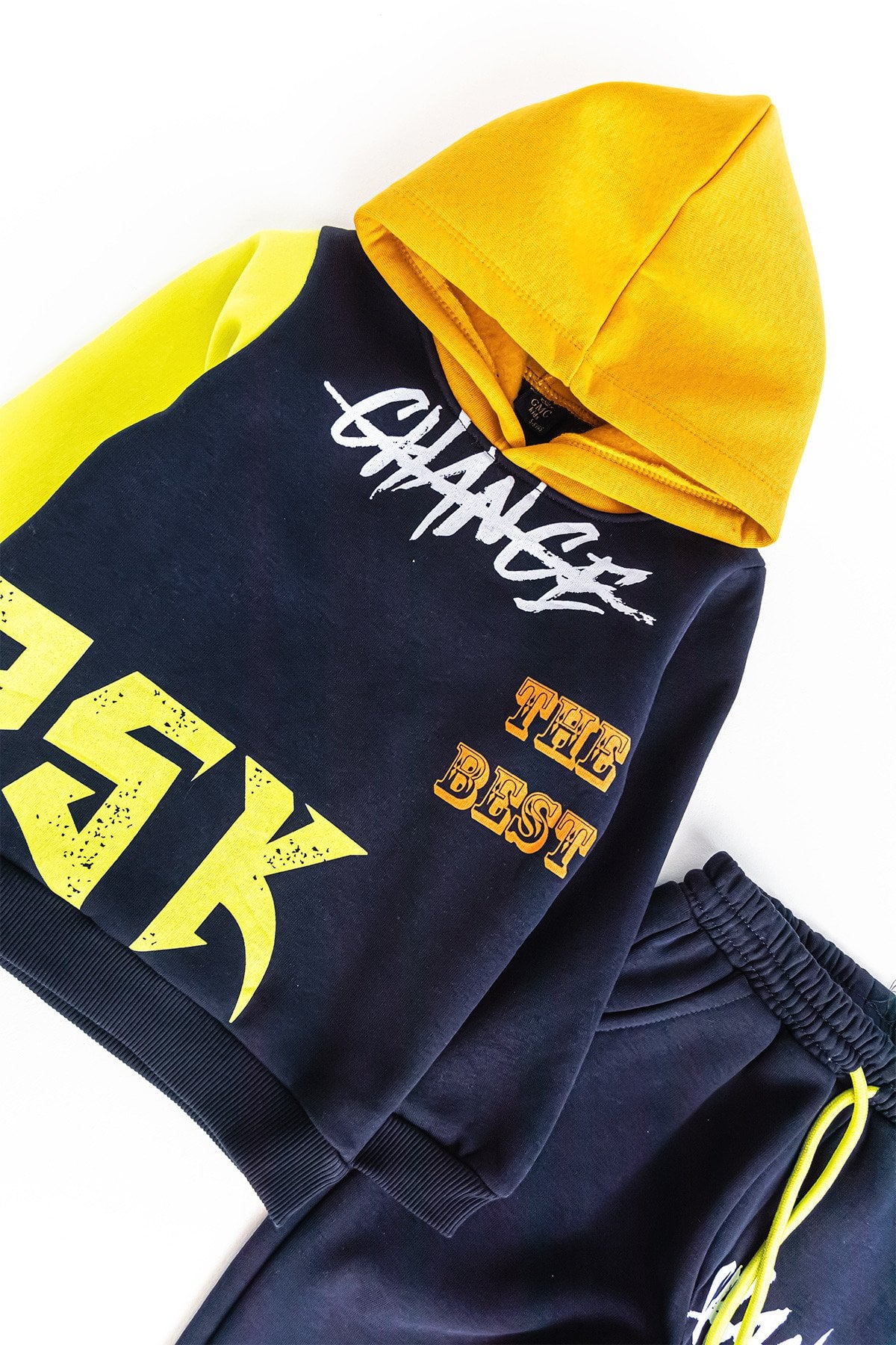 Kapüşonlu Yazı Baskılı Erkek Çocuk Eşofman Takımı