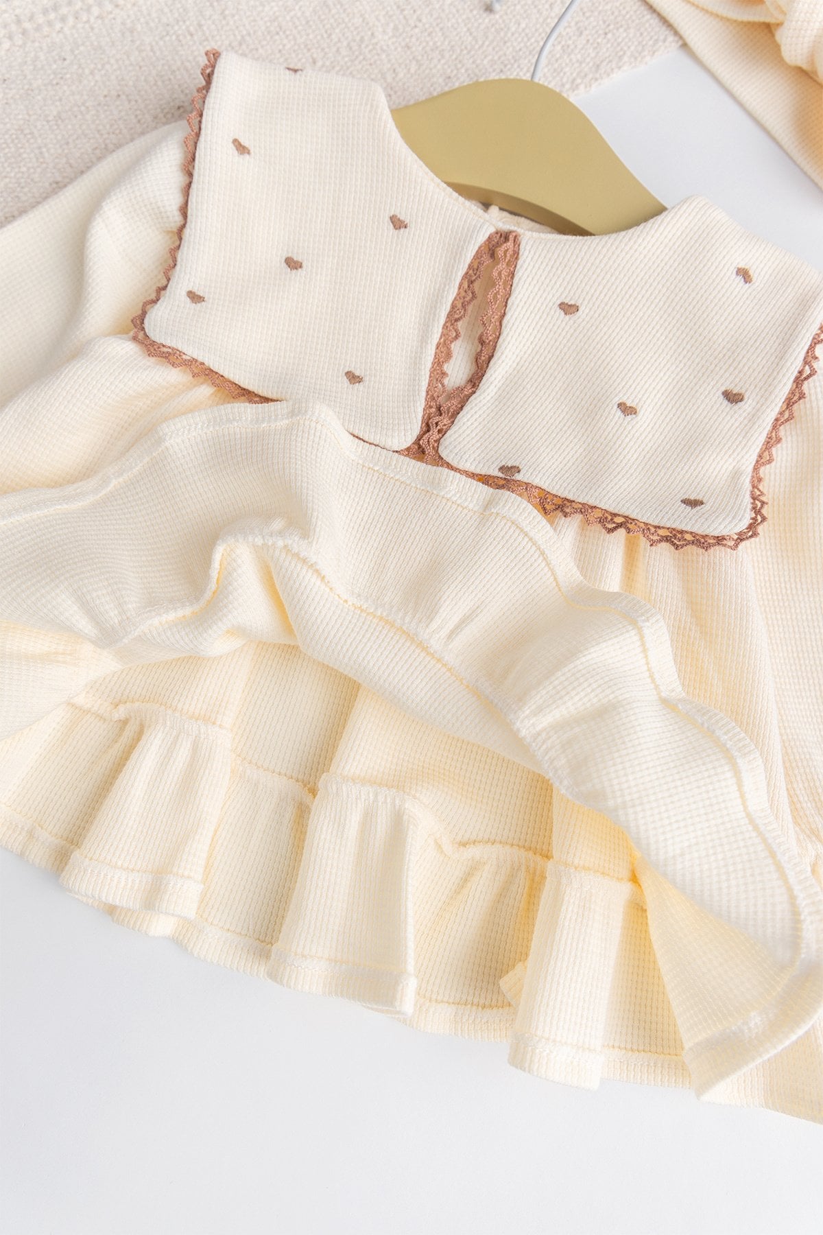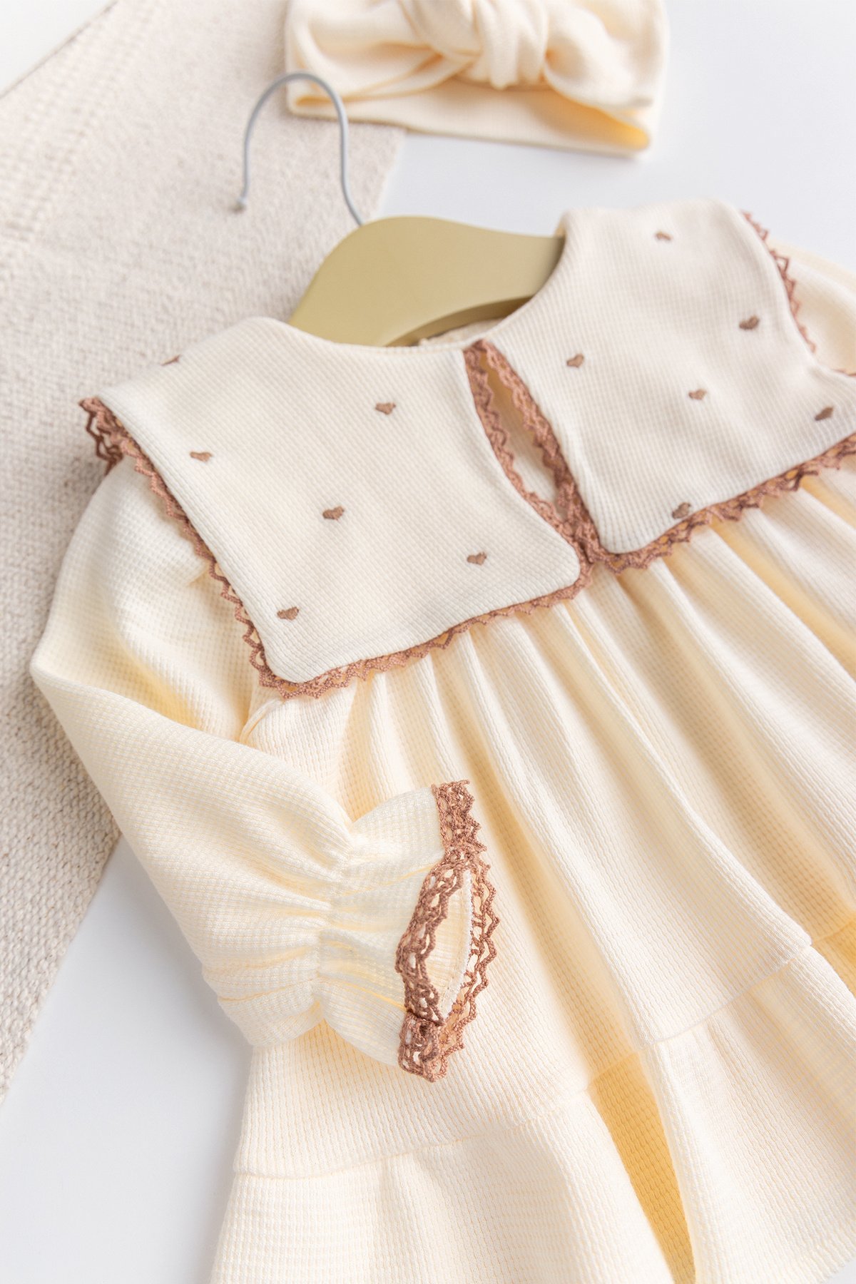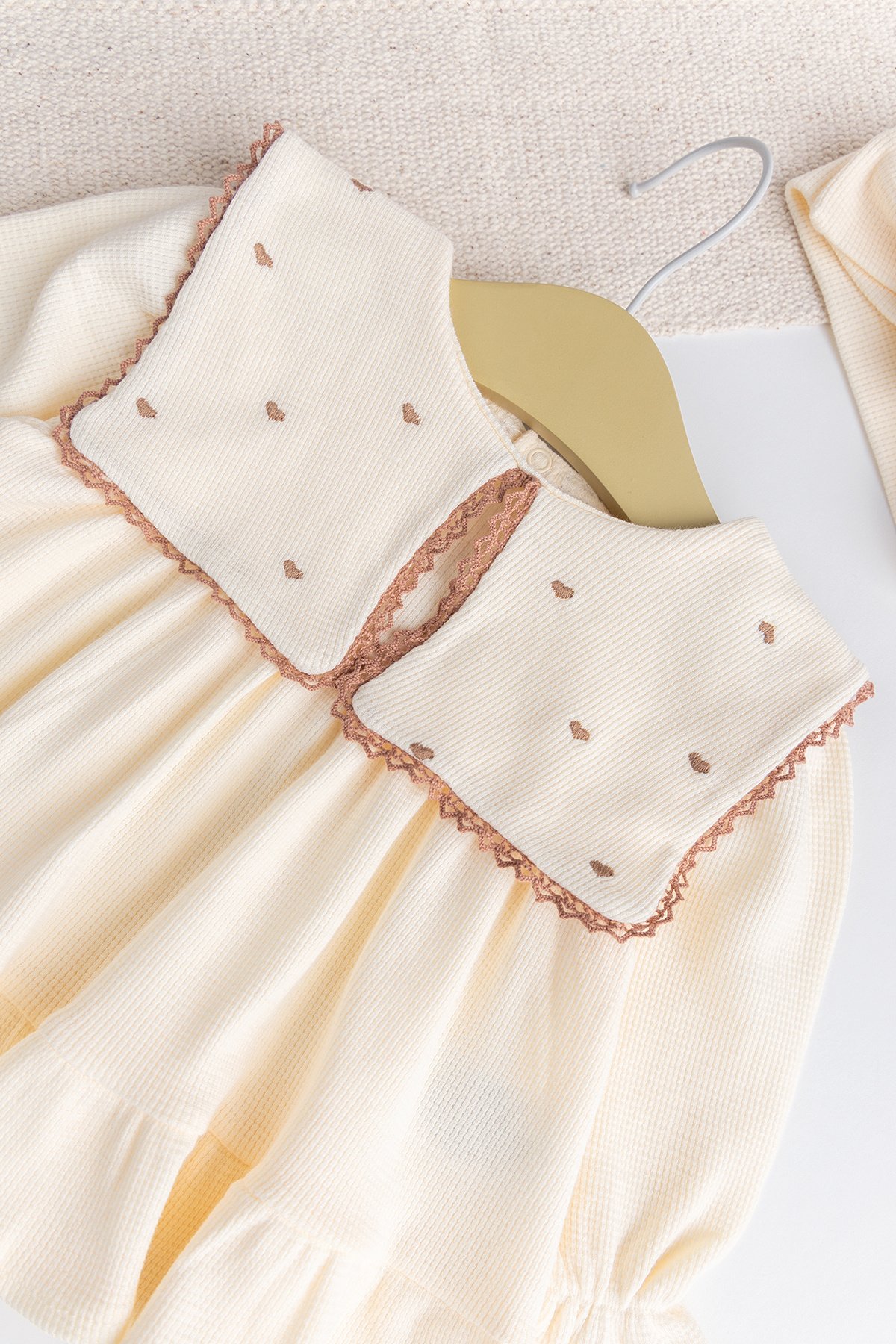 - Bebek elbise yumuşak dokulu pamuklu waffle kumaştan üretilmiştir