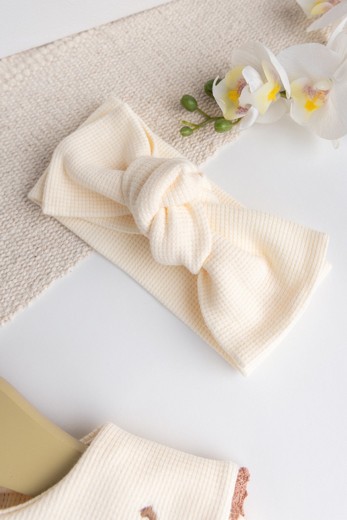 - Bebek elbisenin bandanası fiyonklu modeldir.