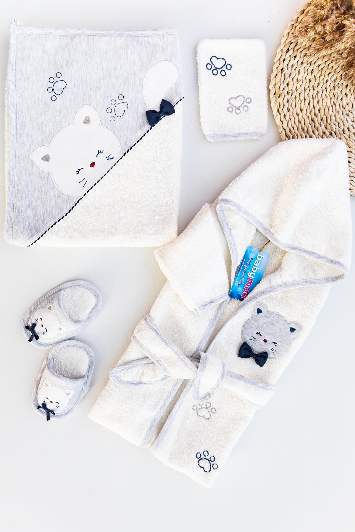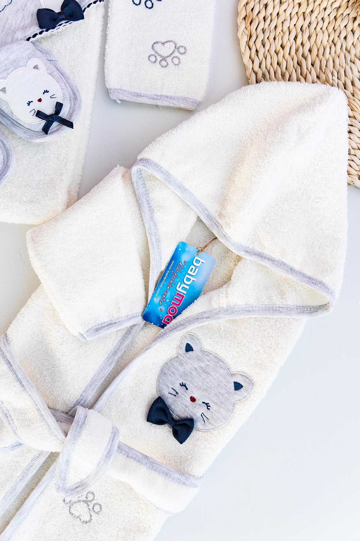 Kedi Figürlü Bebek Banyo Havlu Bornoz Seti