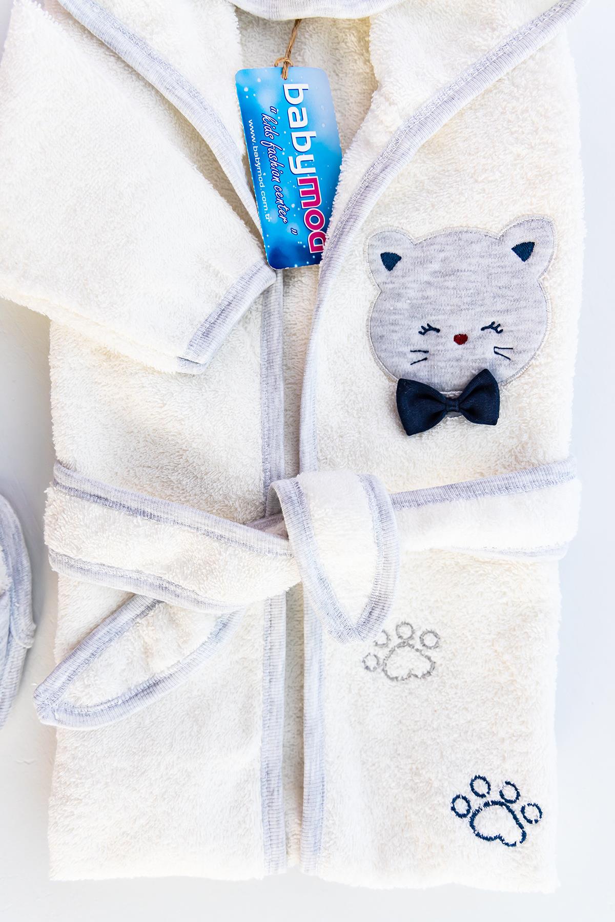 - Kedi figürlü kapüşonlu bebek bornozu