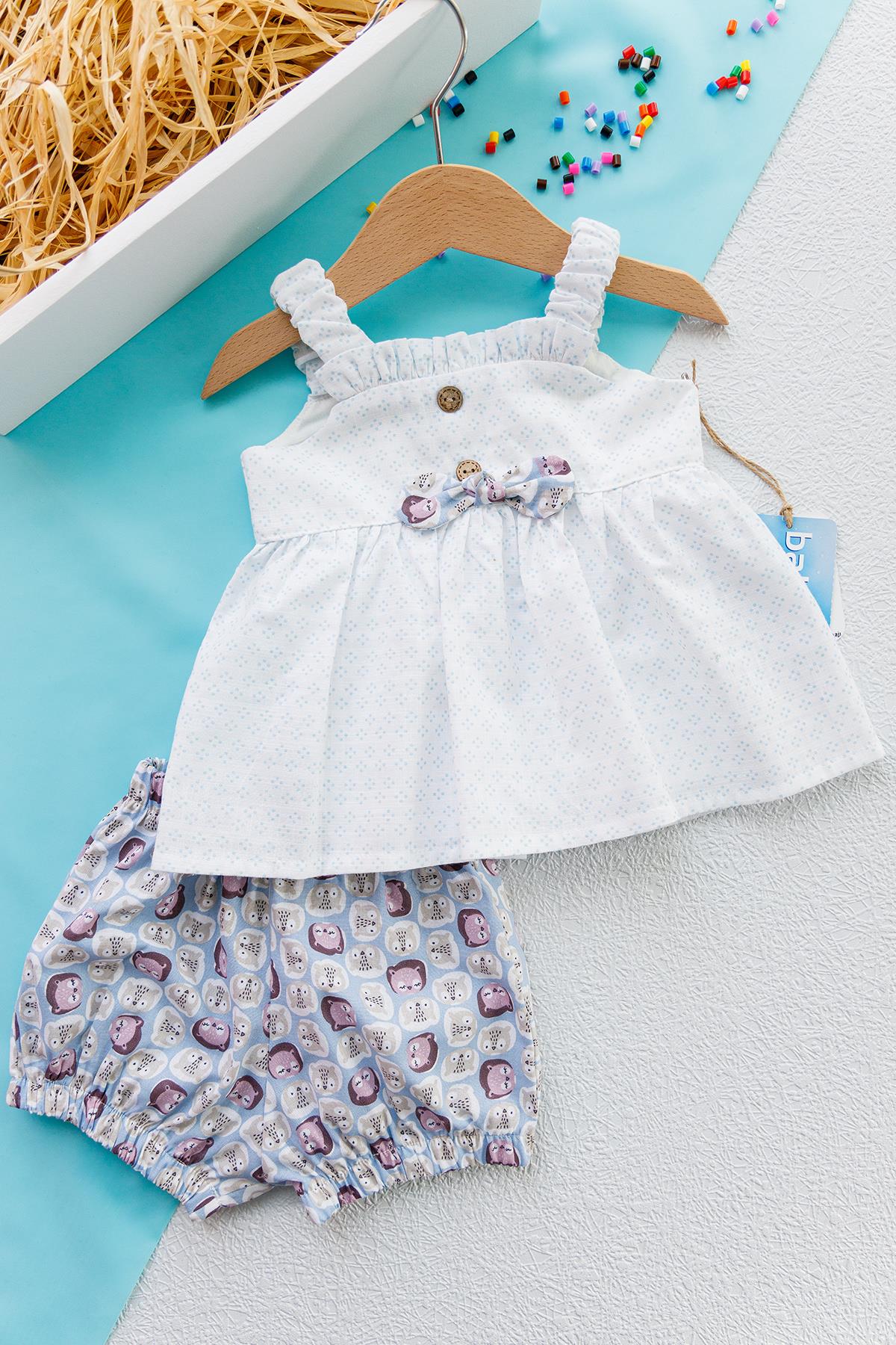 Kedi Figürlü Yazlık İkili Kız Bebek Elbise Takım