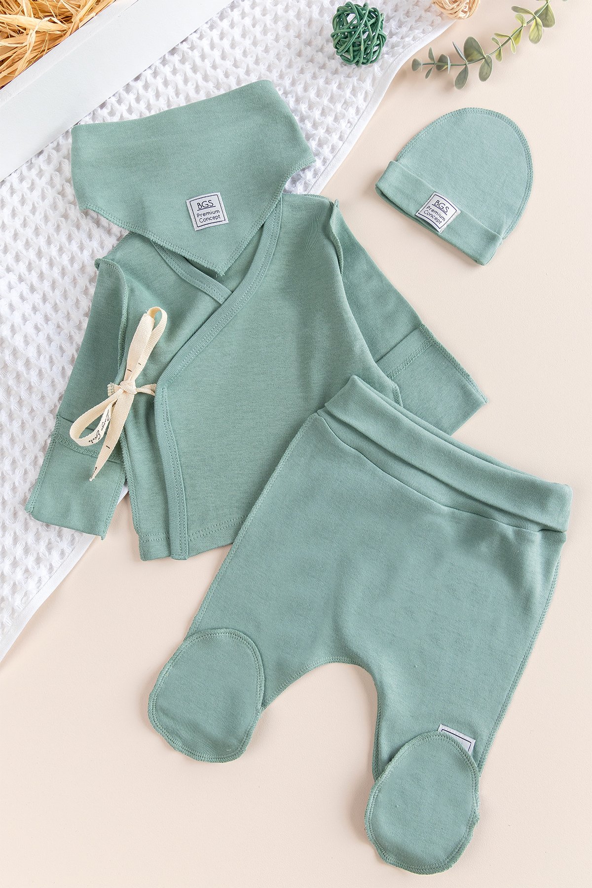 Kendinden Eldivenli Natural Bebek Hastane Çıkışı Bebek Takımı