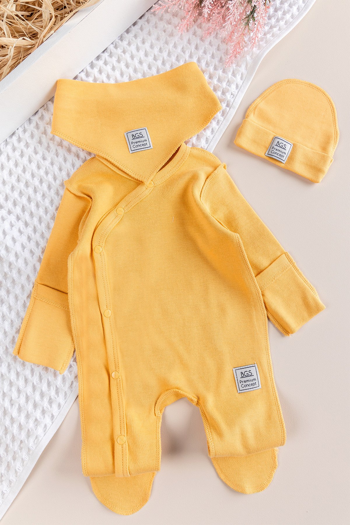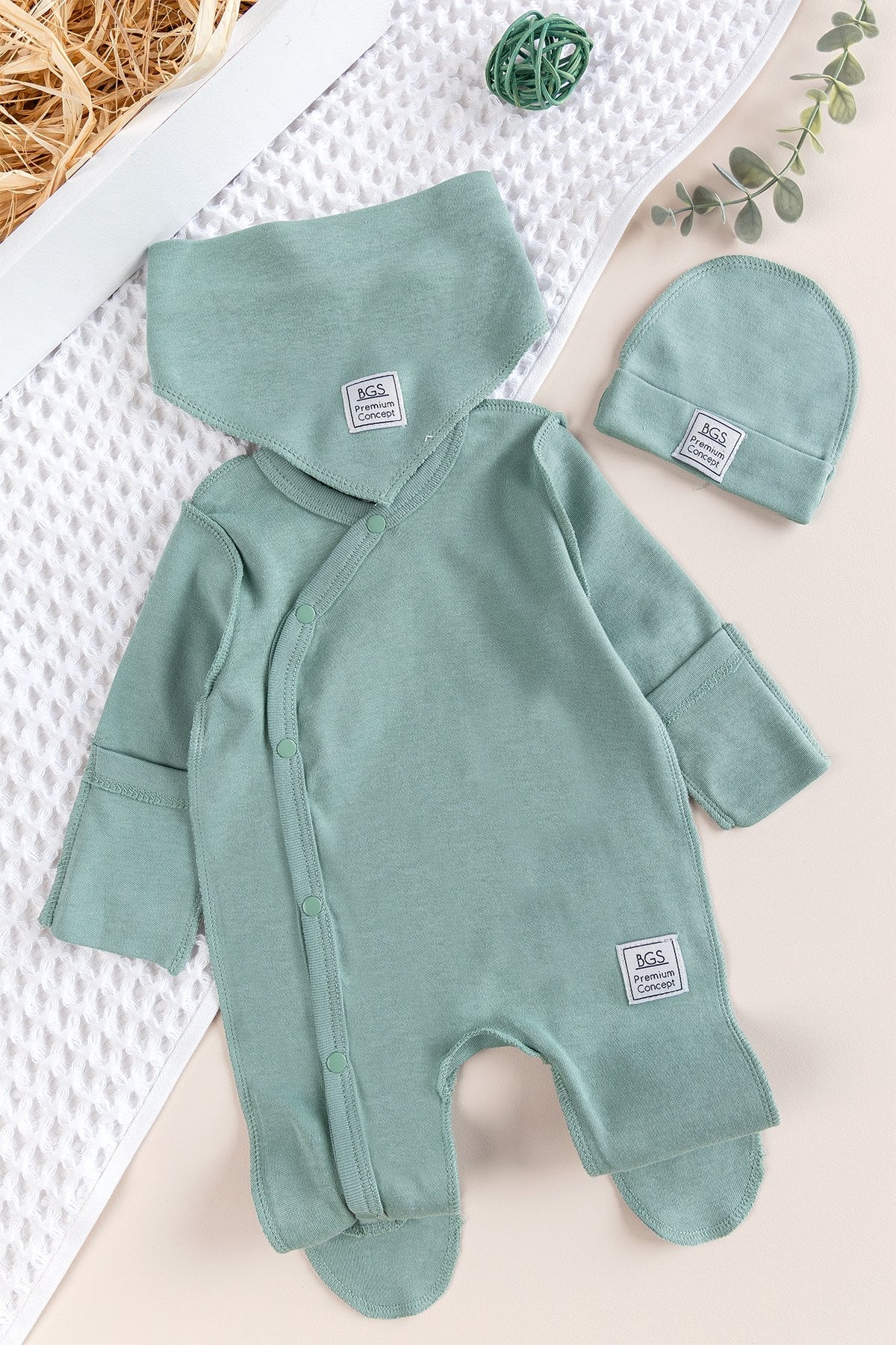 Babymod Natural Baby Jumpsuit Set with Gloves