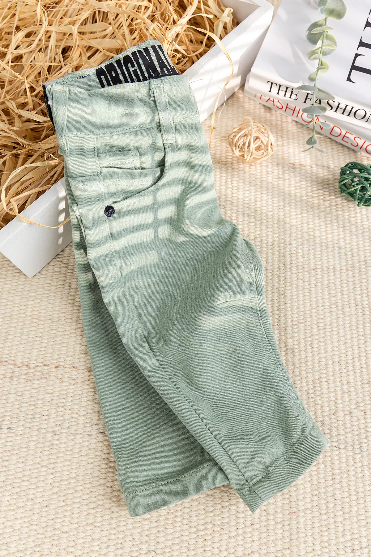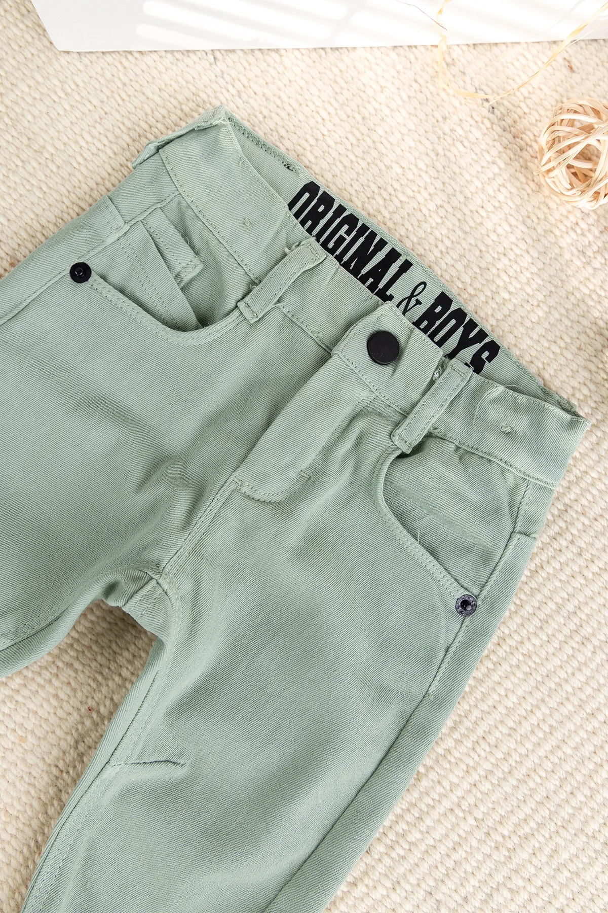 - Erkek bebek pantolon keten yumuşak dokulu pamuklu kumaştan üretilmiştir.