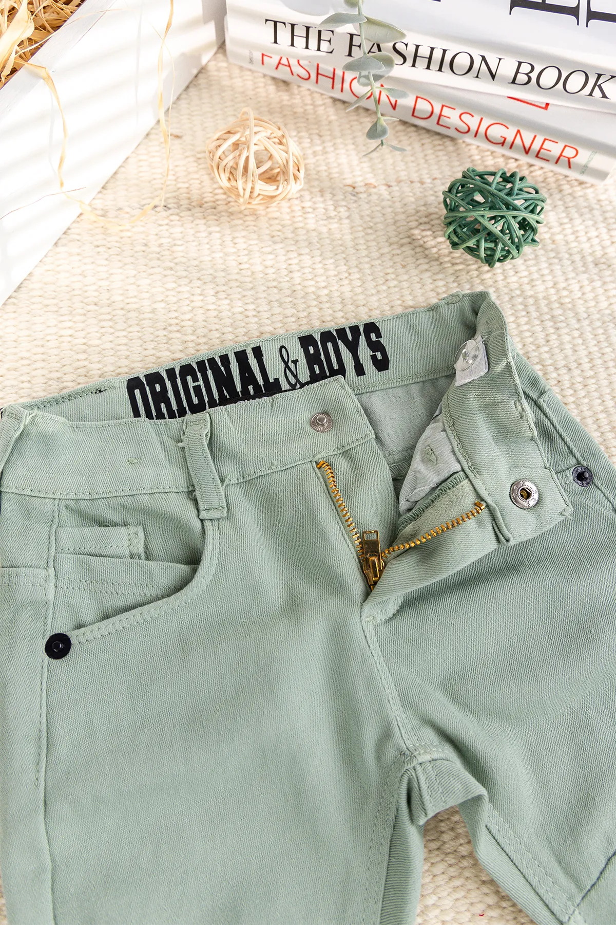 - Bebek pantolon düğme iliklemeli fermuar kapamalıdır.