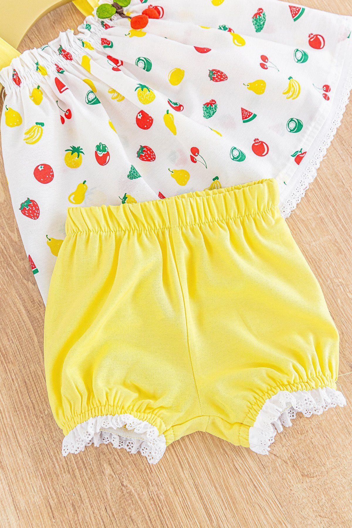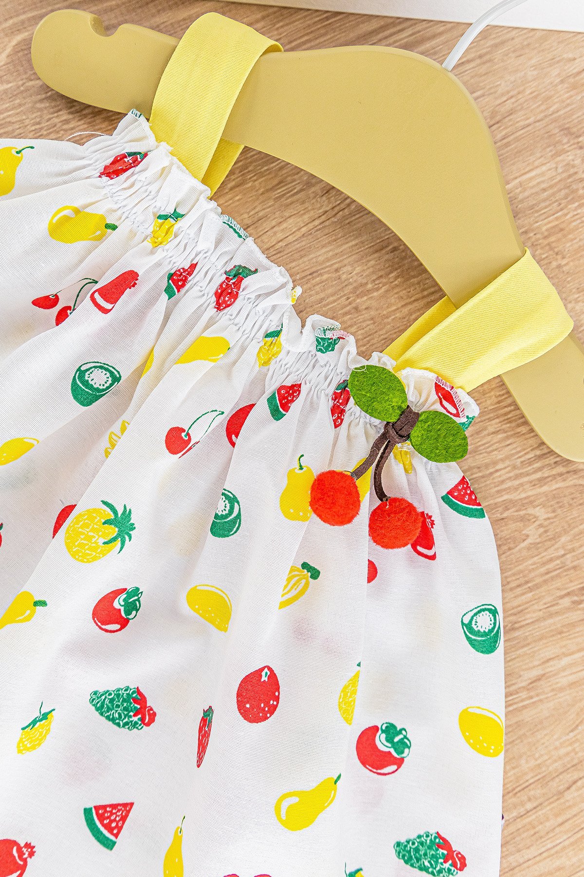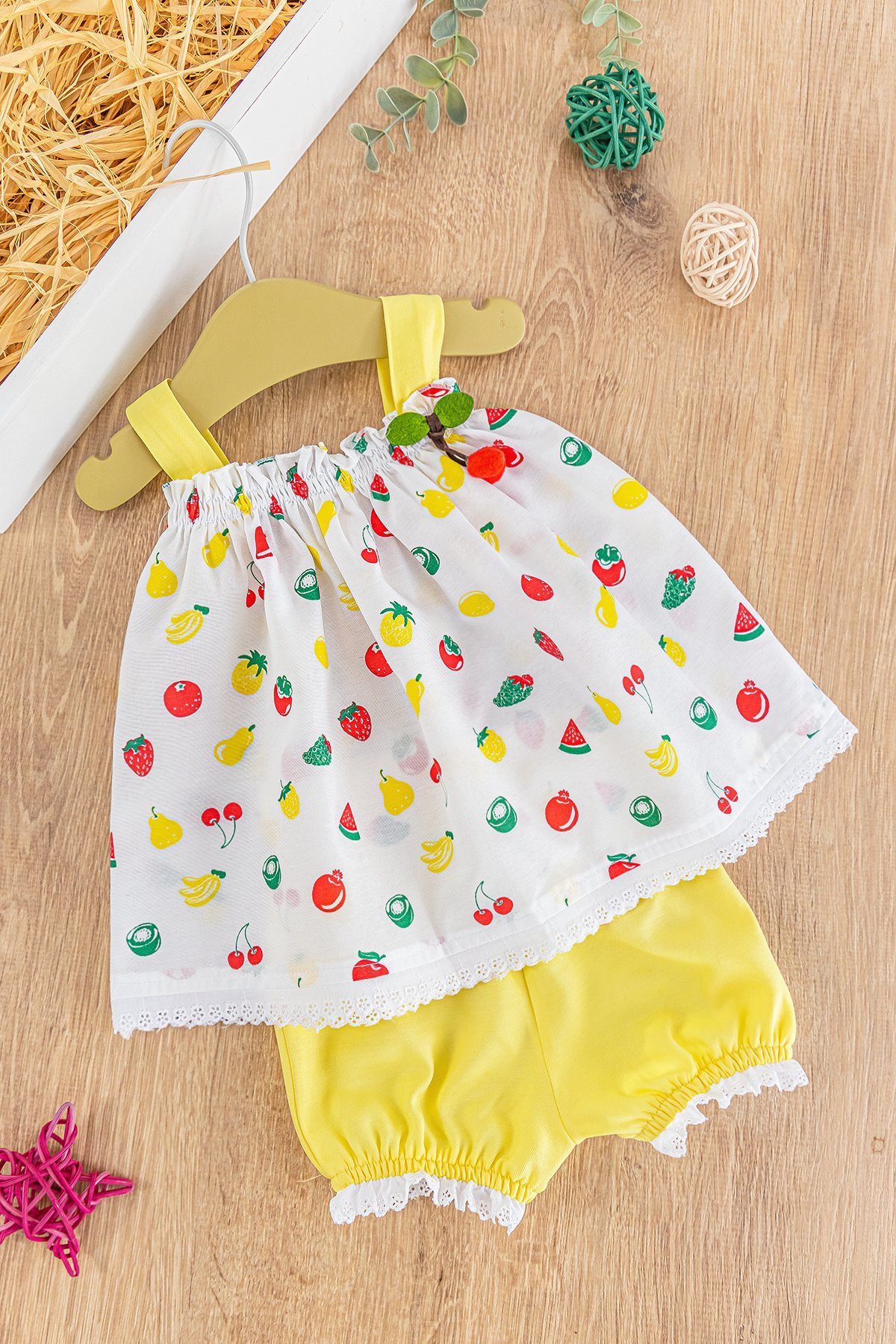 Kiraz Figürlü Yazlık Askılı Kız Bebek Elbise Bebek Takım
