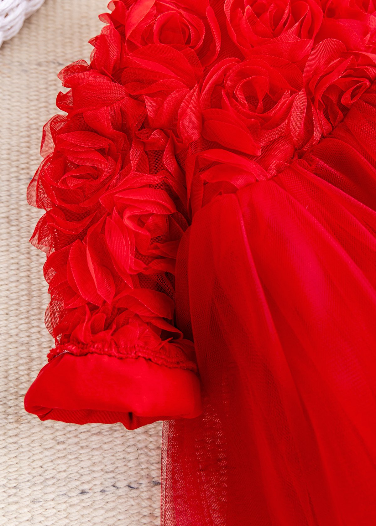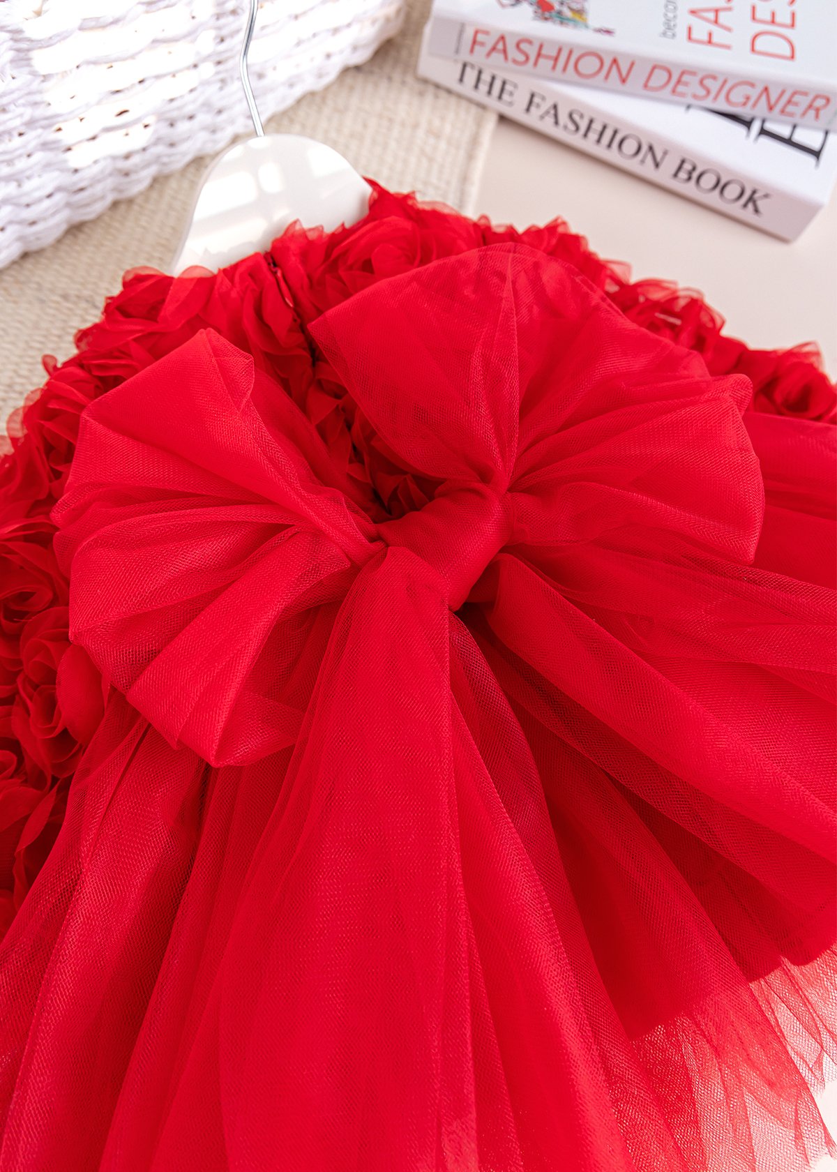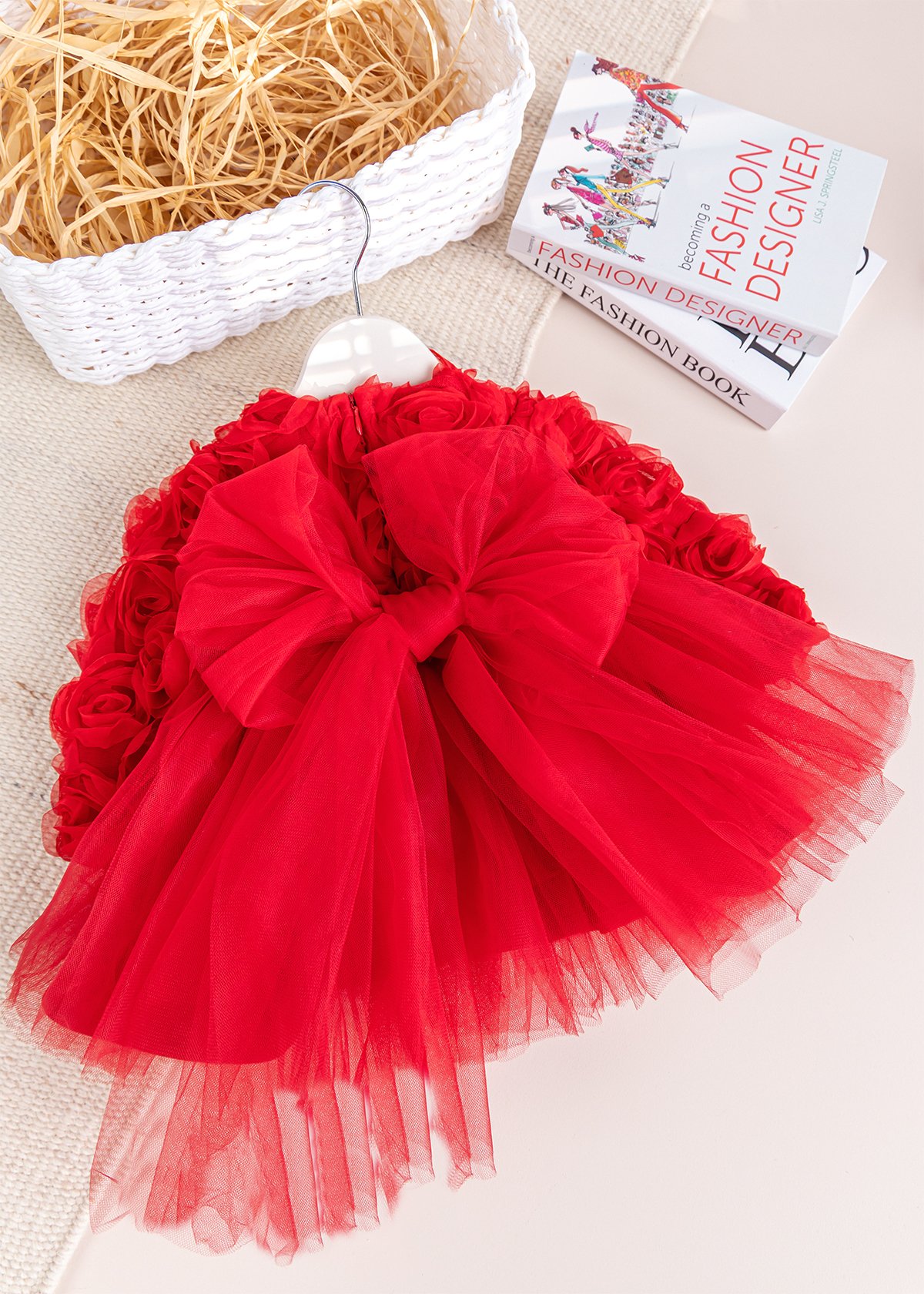 Fiyonklu Güllü Tül Detaylı Şık Dogum Günü Özel Gün Kız Bebek/Çocuk Elbise KIRMIZI - 2 Yaş