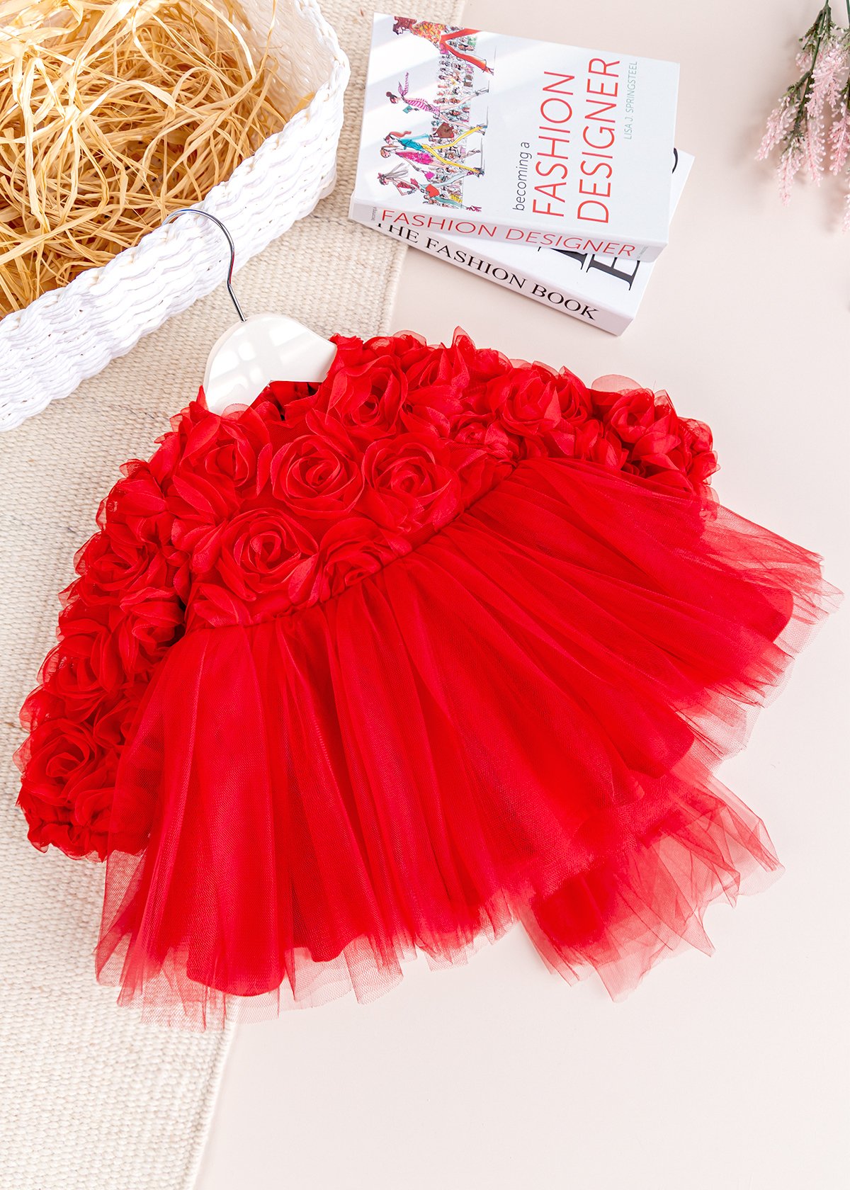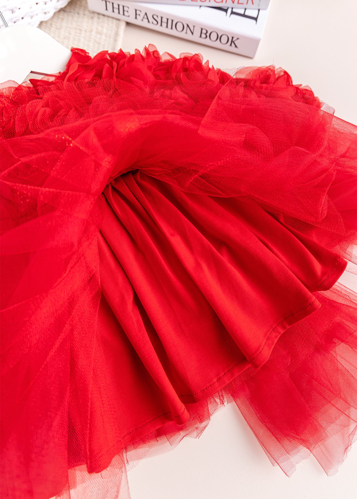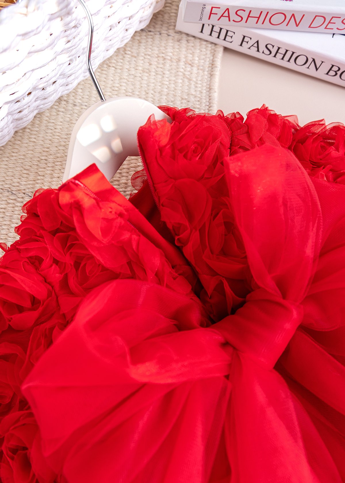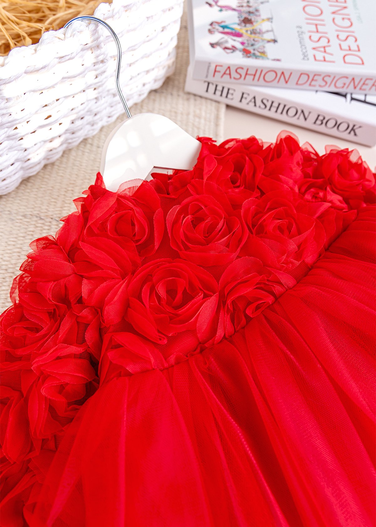 Fiyonklu Güllü Tül Detaylı Şık Dogum Günü Özel Gün Kız Bebek/Çocuk Elbise KIRMIZI - 2 Yaş