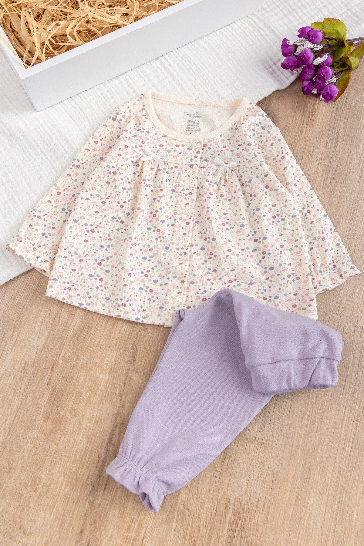 - Bebek hırka çicek desenli olup önünde fiyonk süsleme mevcuttur.