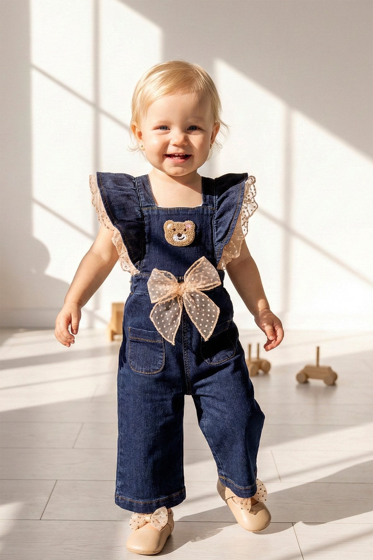 - Kız bebek salopet yumuşak dokulu esnek denim kumaştan üretilmiştir