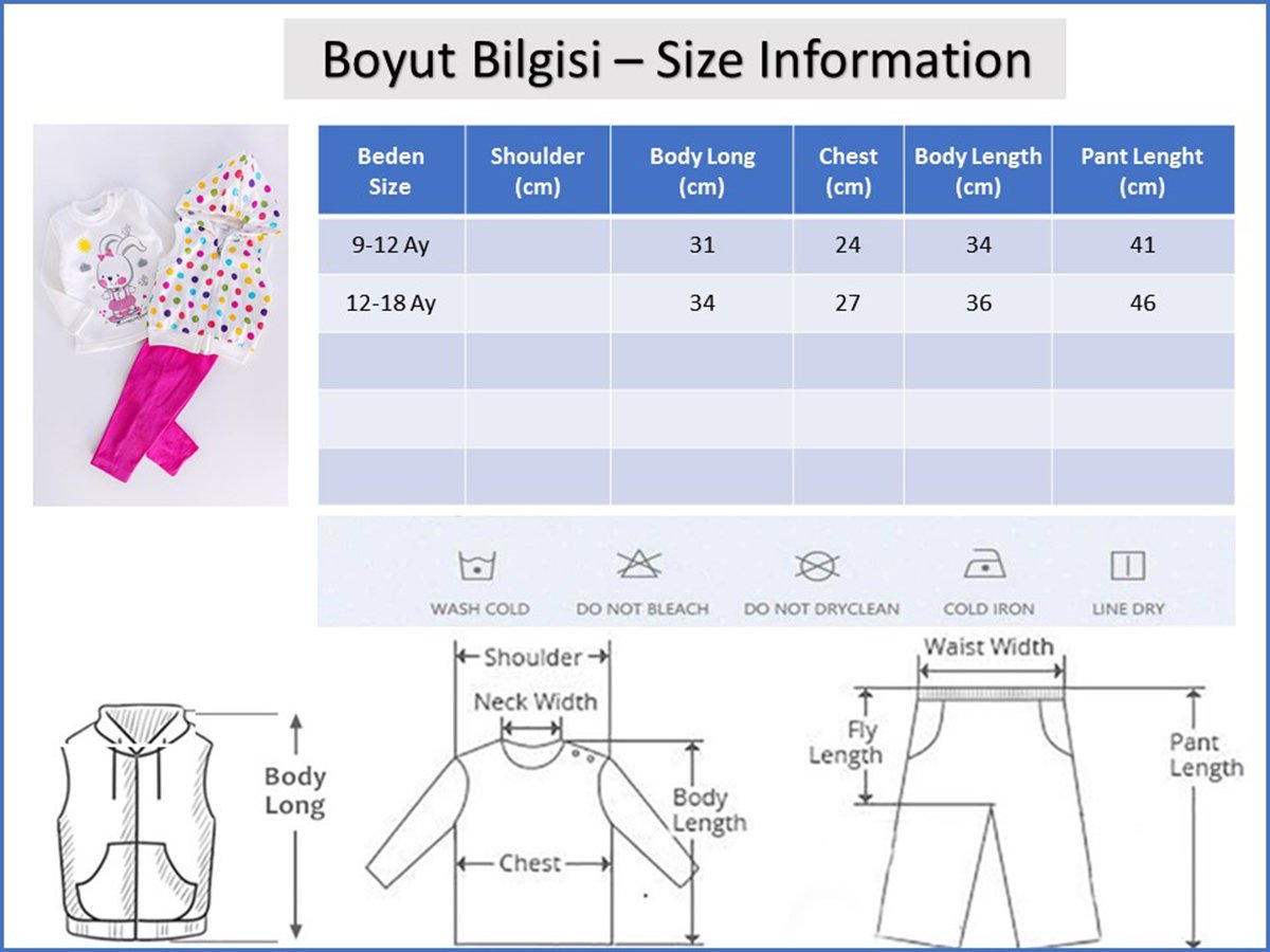 - Görselde kullanılan ürün 9-12 Ay bedendir.