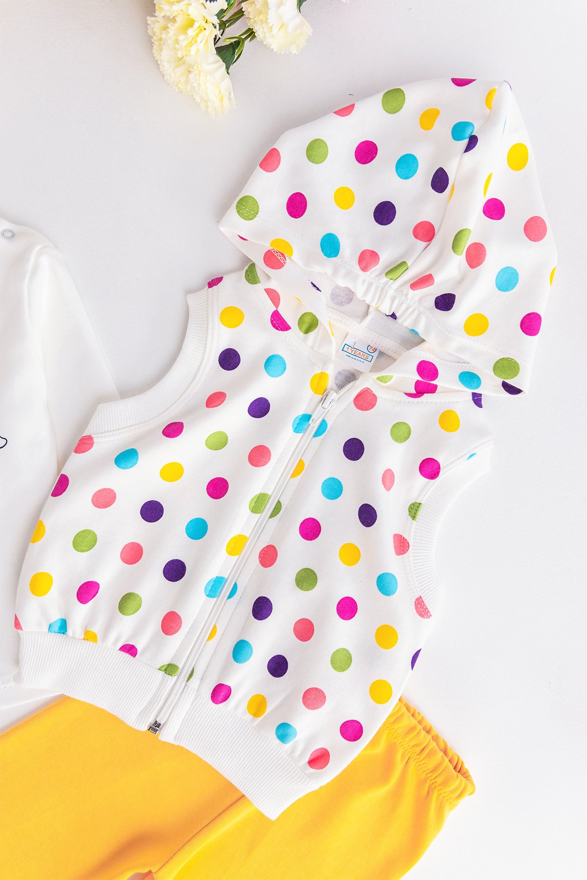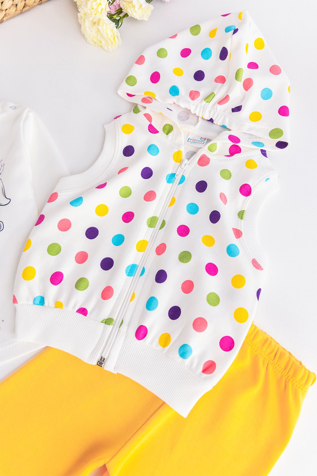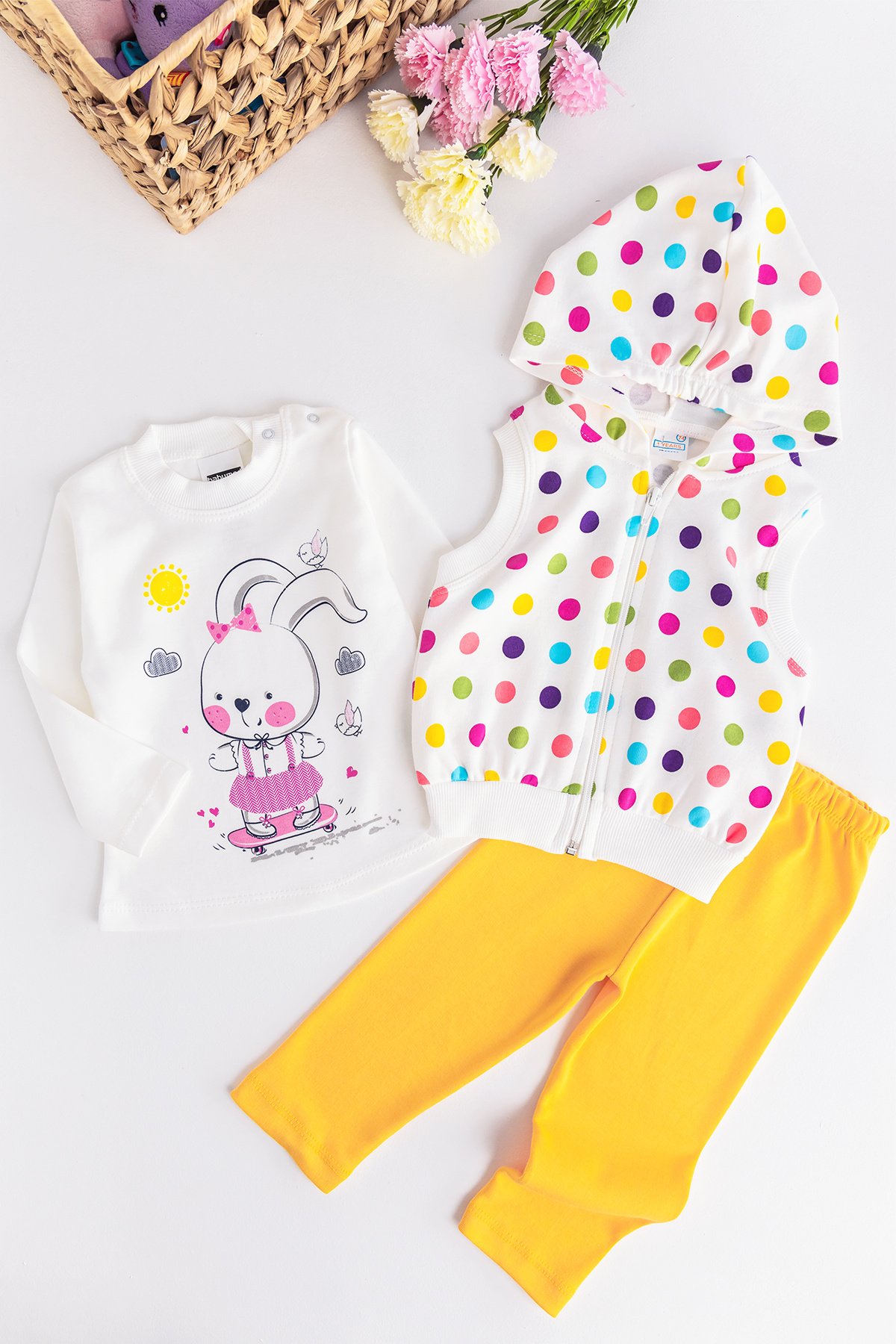 Kız Bebek Takım Puantiyeli Tavşan Desenli Yelekli Bebek Takım