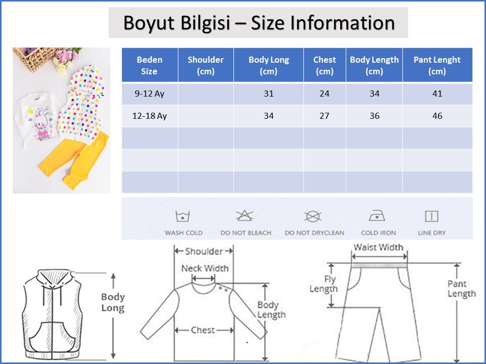 - Görselde kullanılan ürün 9-12 Ay bedendir.