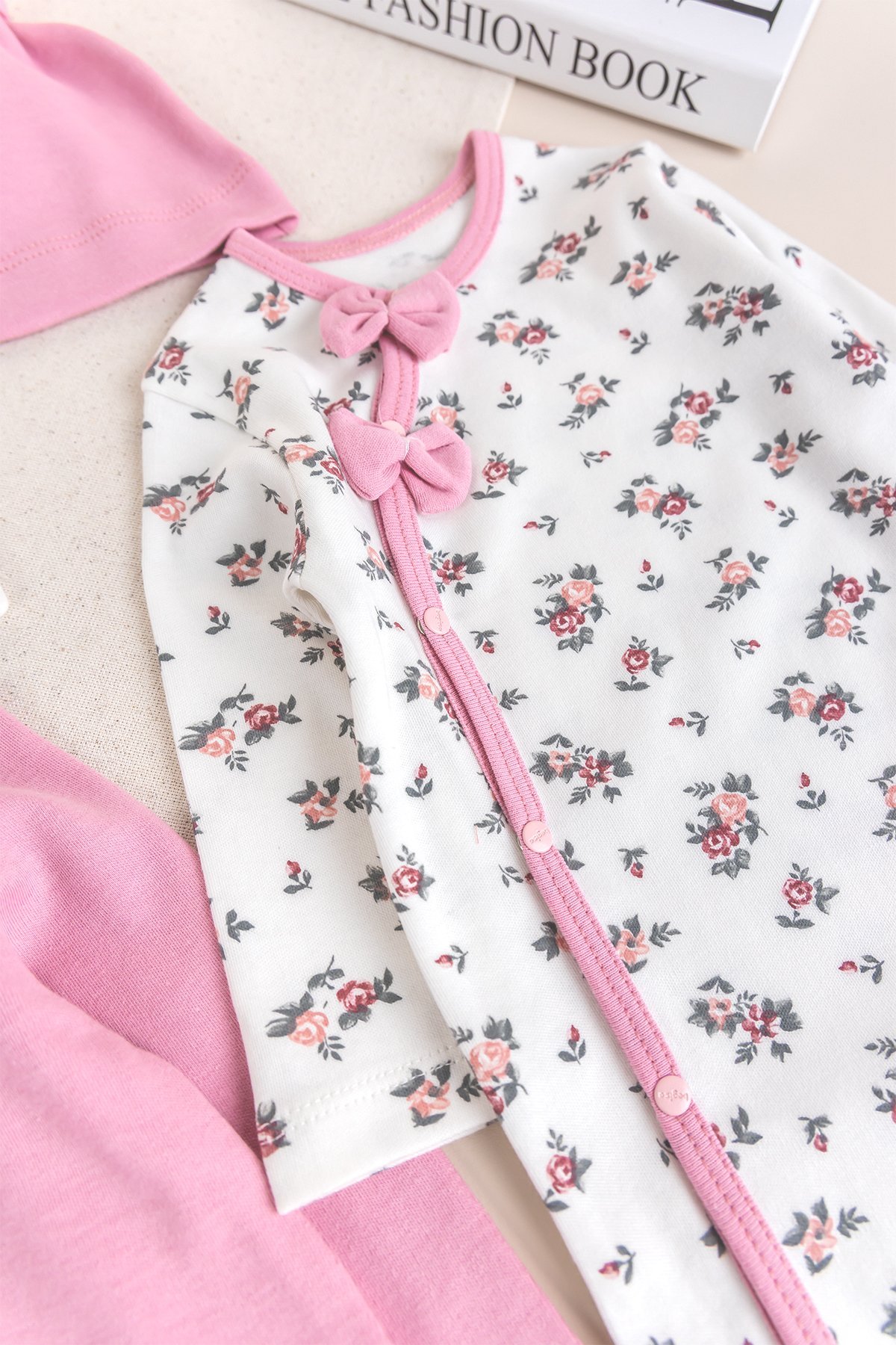 Kız Bebek Tulum Çiçek Desenli İkili Uzun Kollu Tulum Takım