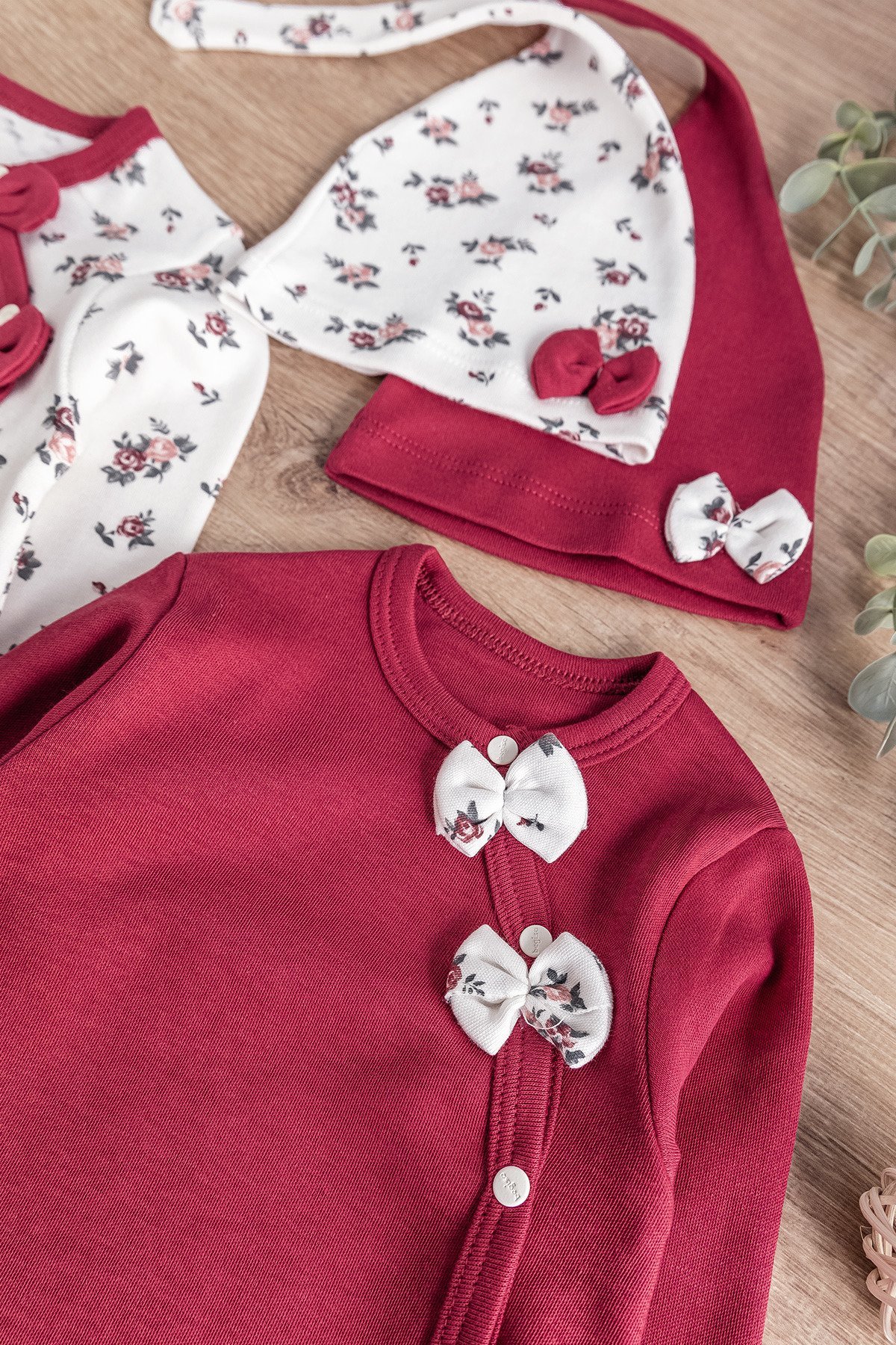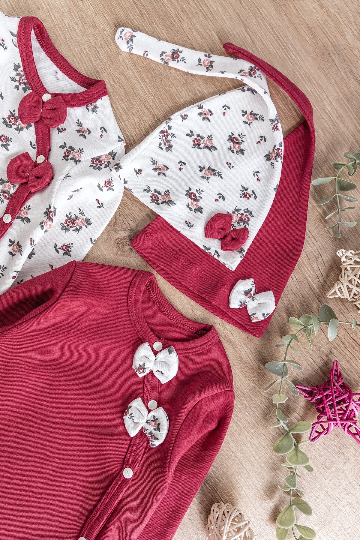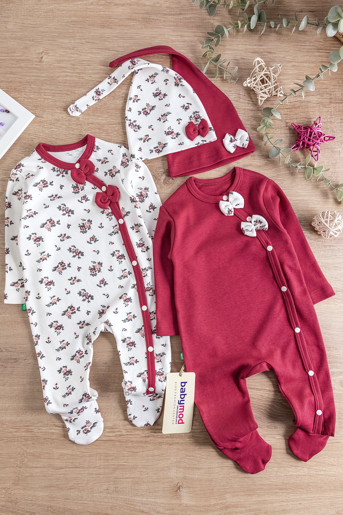 Kız Bebek Tulum Çiçek Desenli İkili Uzun Kollu Tulum Takım