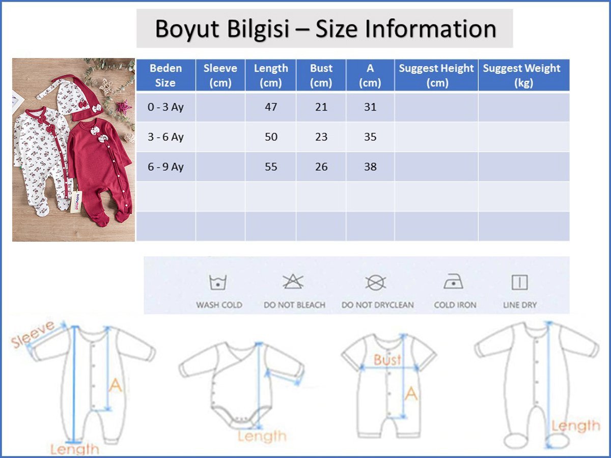 - Görselde kullanılan ürün bedeni 0-3 Ay bedendir.