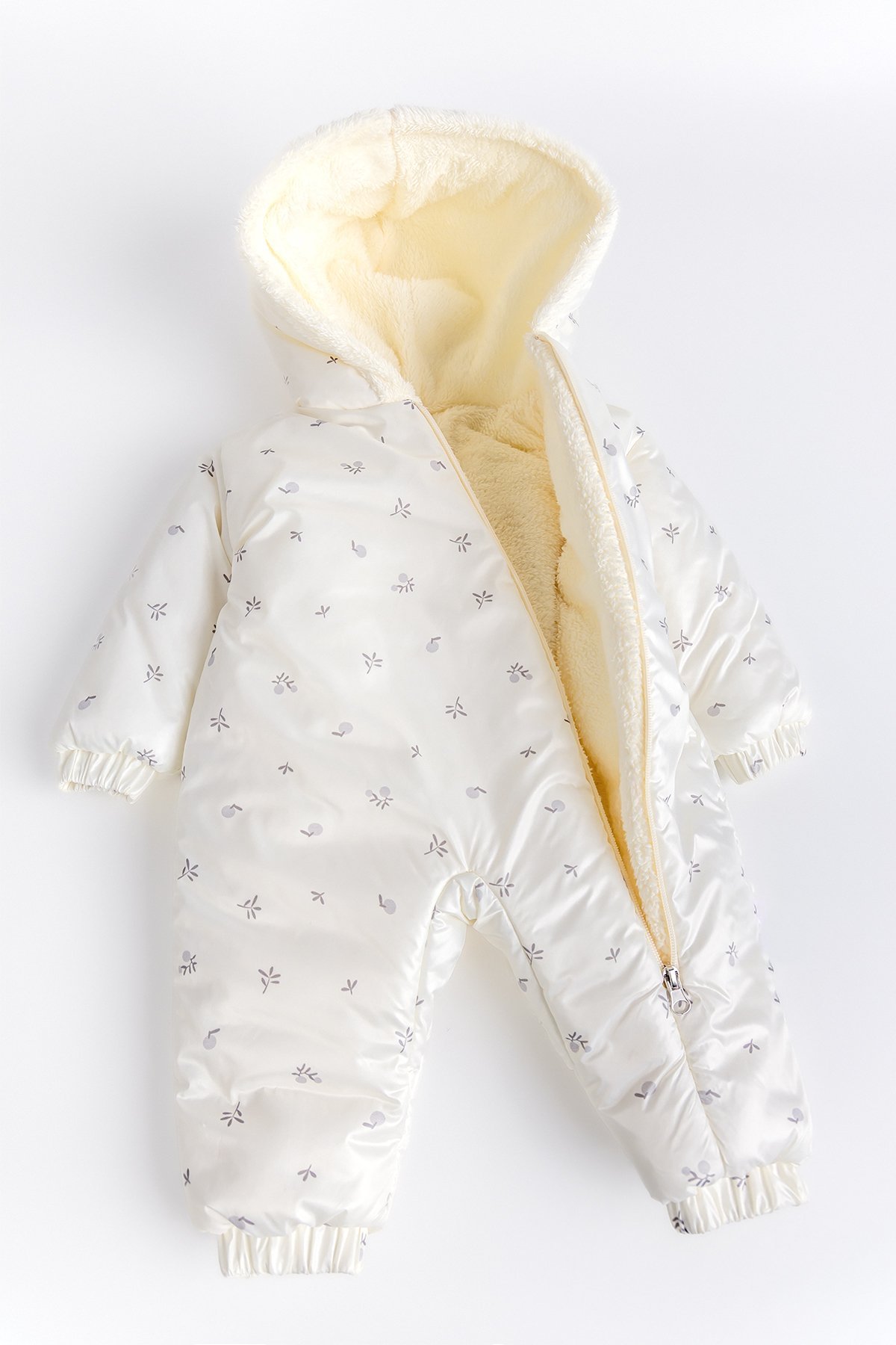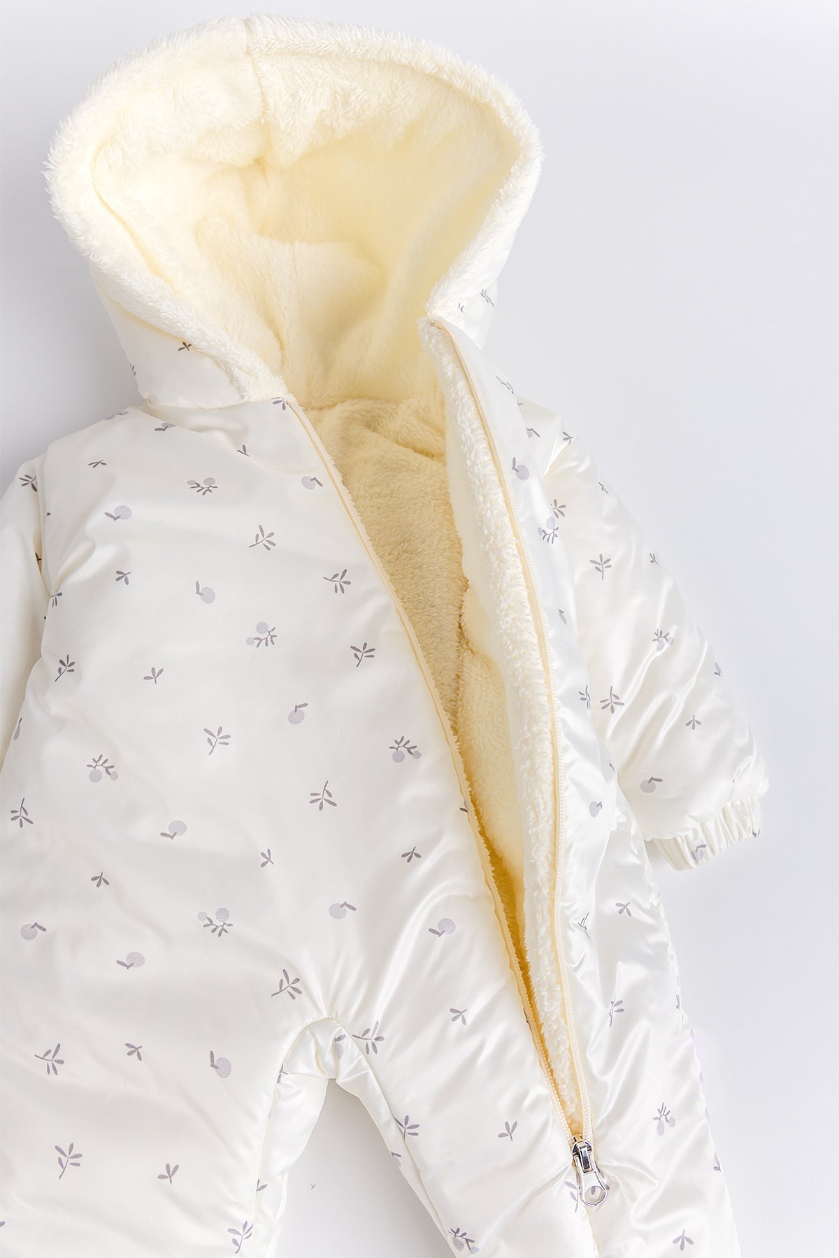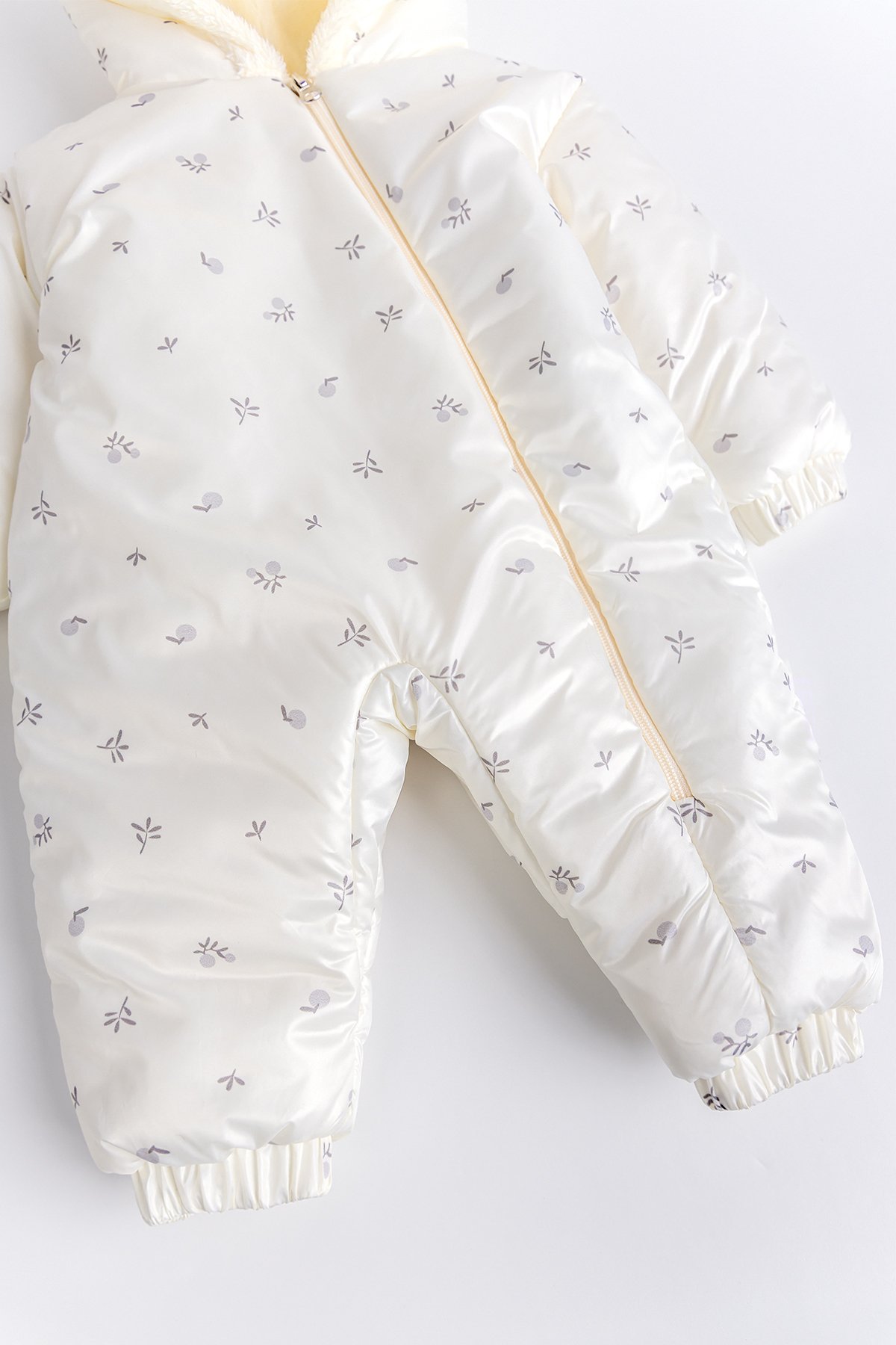 Kapüşonlu Peluş Astarlı Kışlık Kız-Erkek Bebek Astronot-Kozmonot Tulum KREM - 18-24 AY