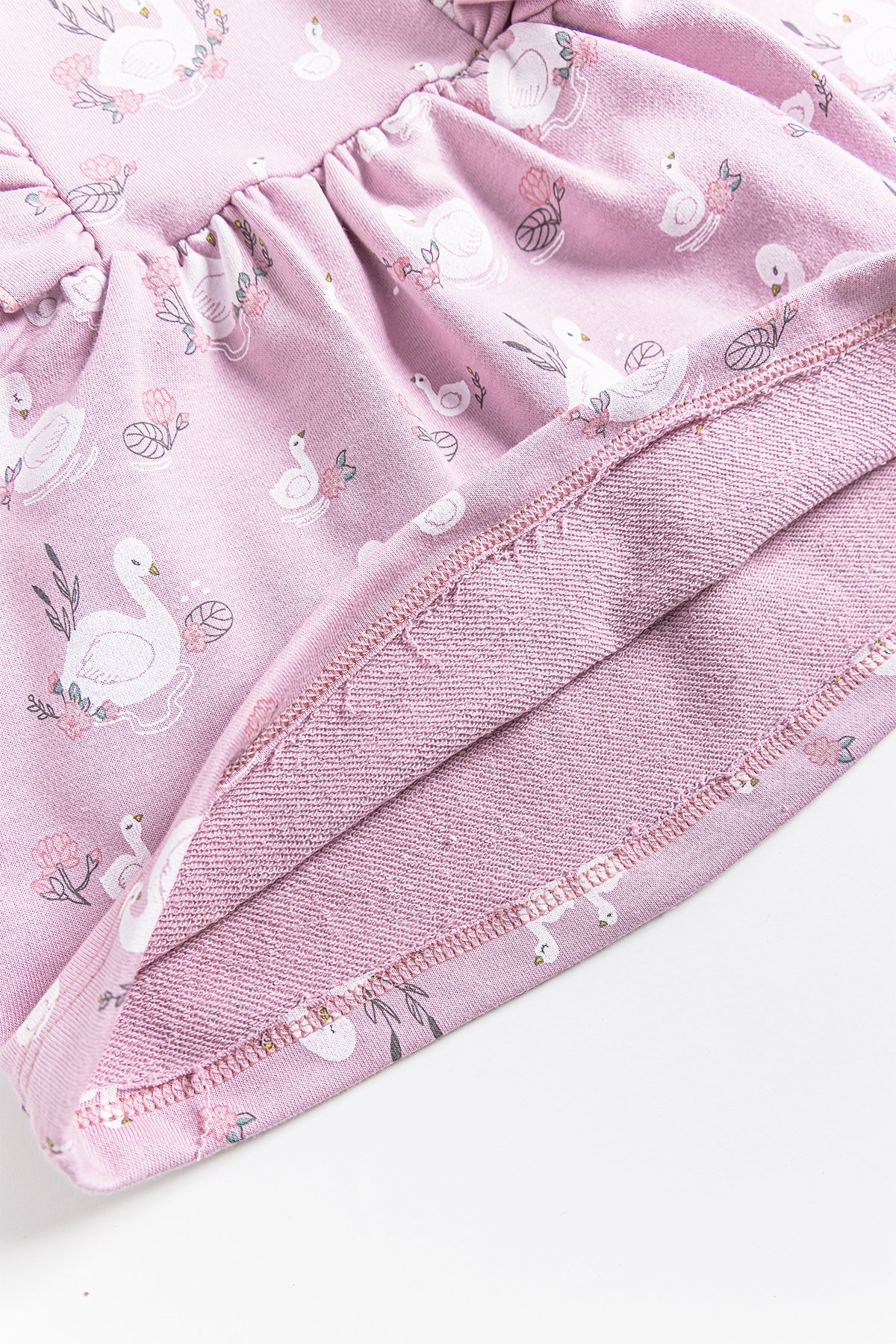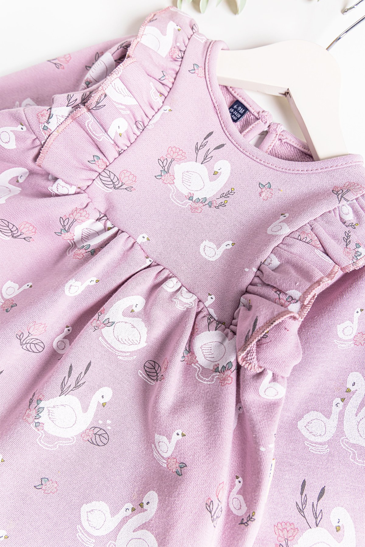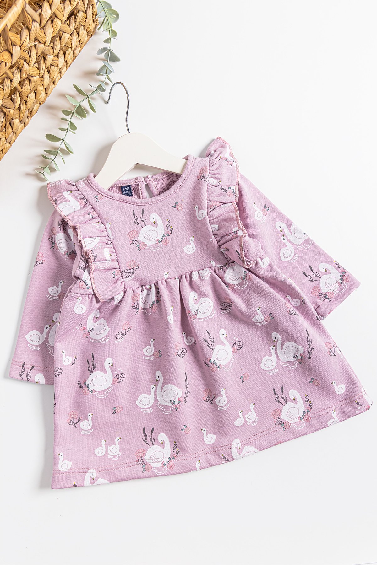 Kuğu Desenli Fırfırlı Kız Bebek Elbise