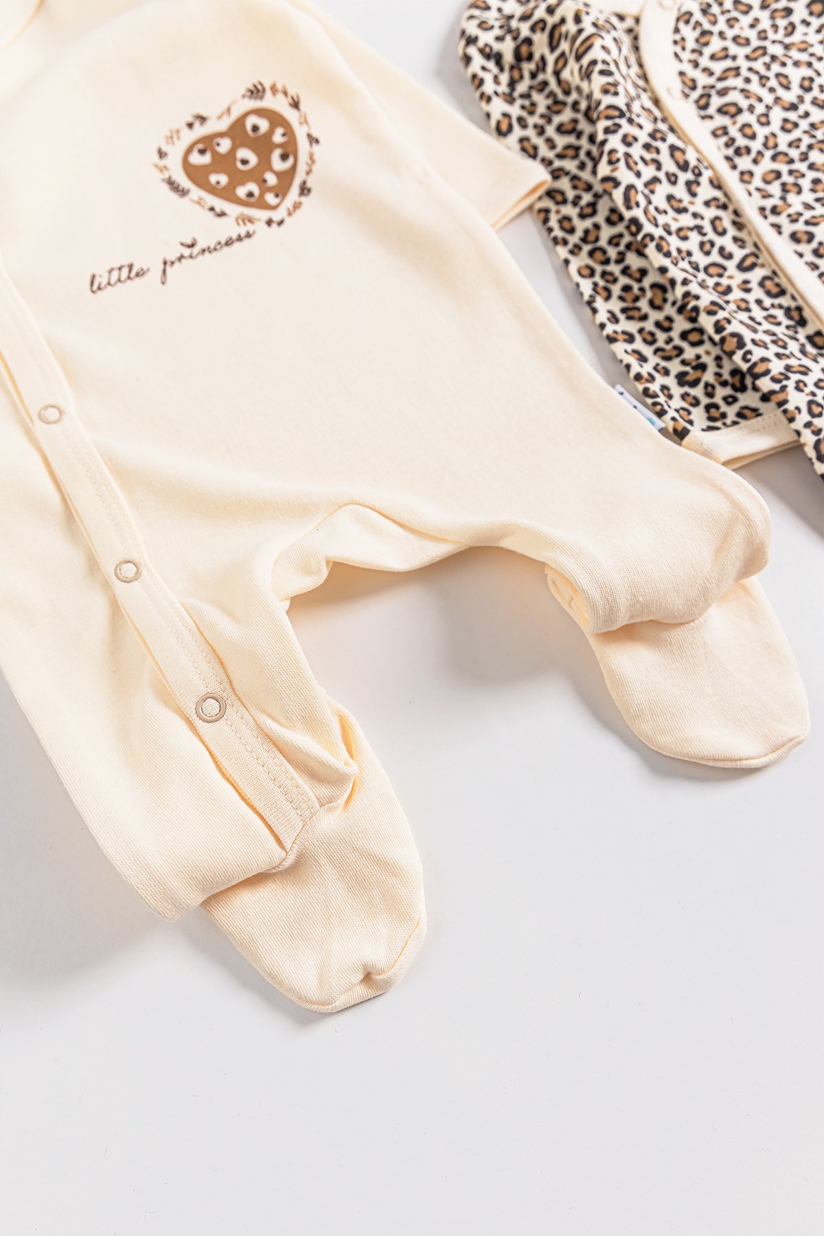 Leopar Desenli 2'li Uzun Kollu Kız Bebek Tulum Takım