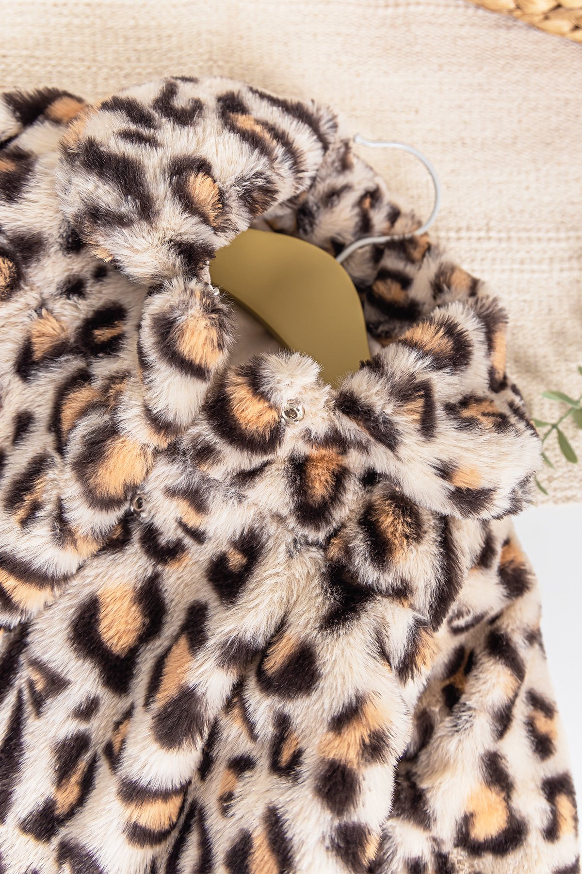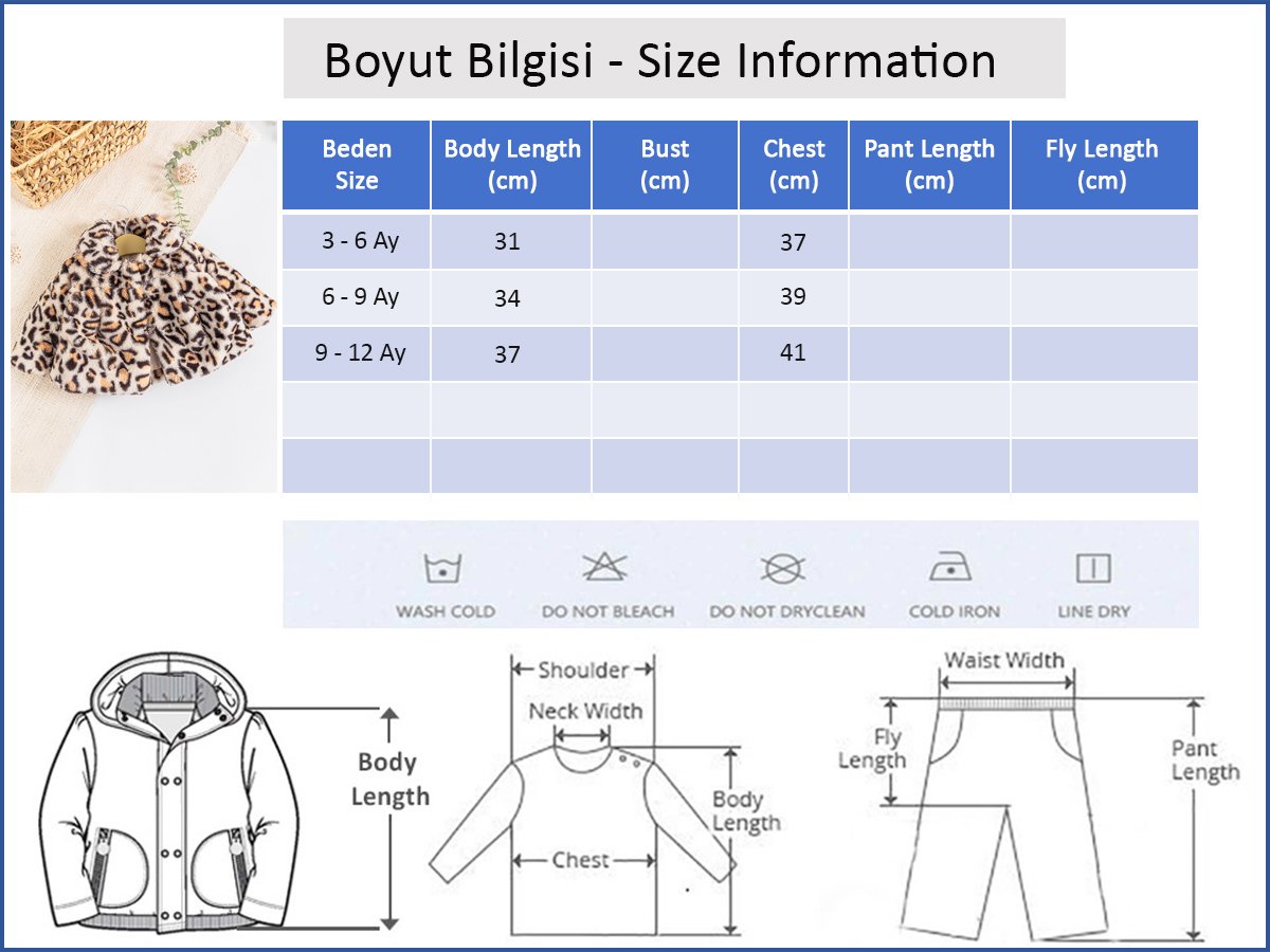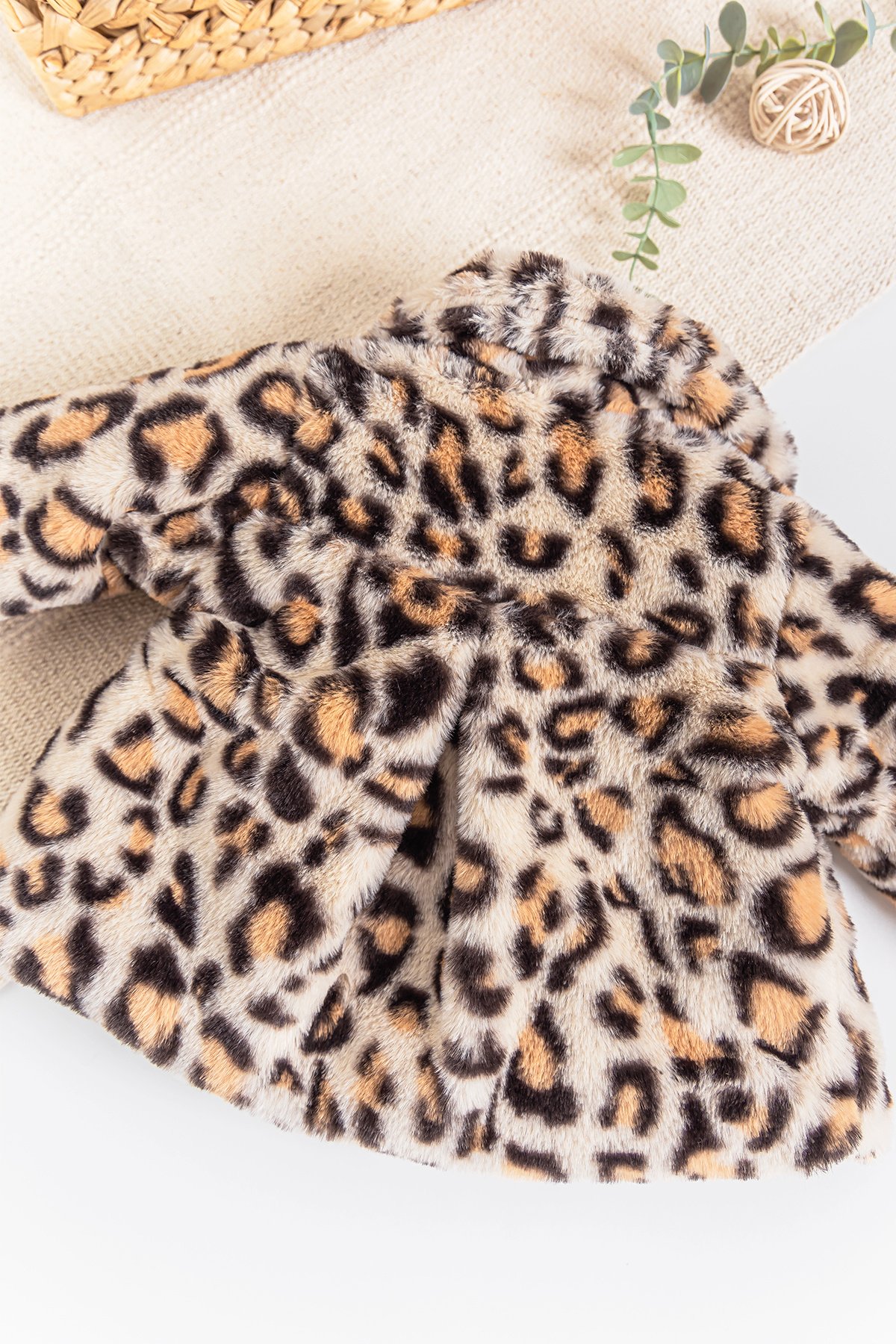 - Bebek mont leopar desenli ve peluş kumaşlıdır.