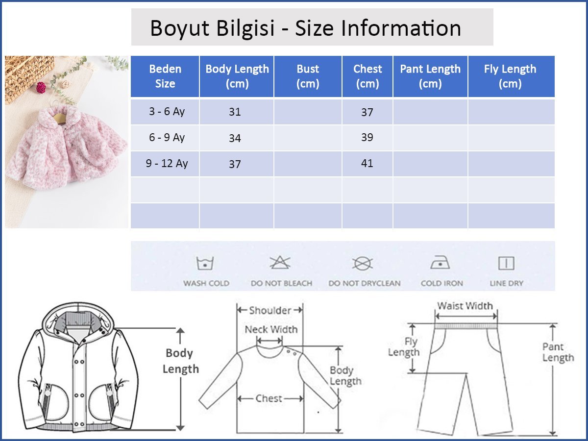 - Bebek mont leopar desenli ve peluş kumaşlıdır.