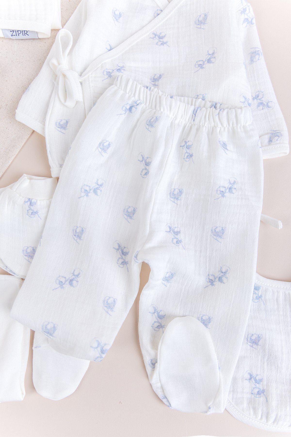 Çiçekli 100% Pamuk Muslin 10'lu Kız Bebek Hastane Çıkışı Yeni Doğan Set