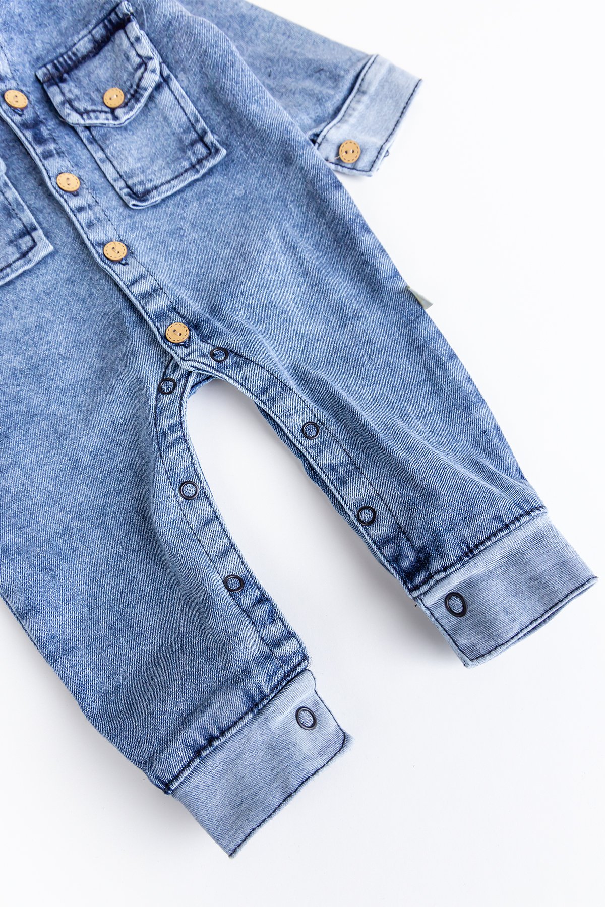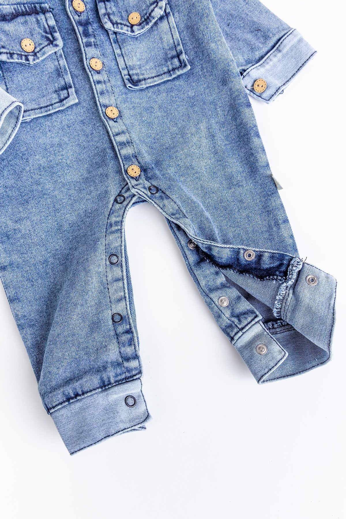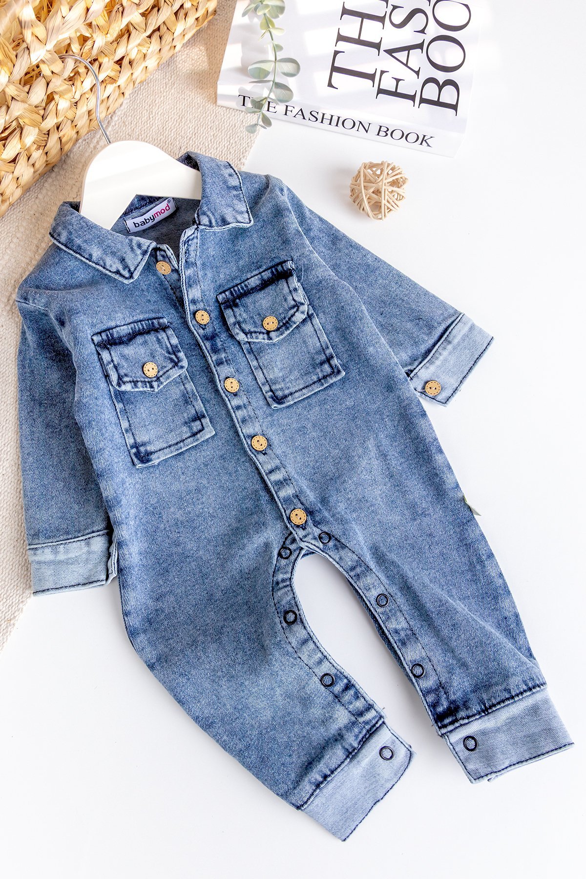 - Erkek bebek tulum yumuşak dokulu denim kumaştan üretilmiştir