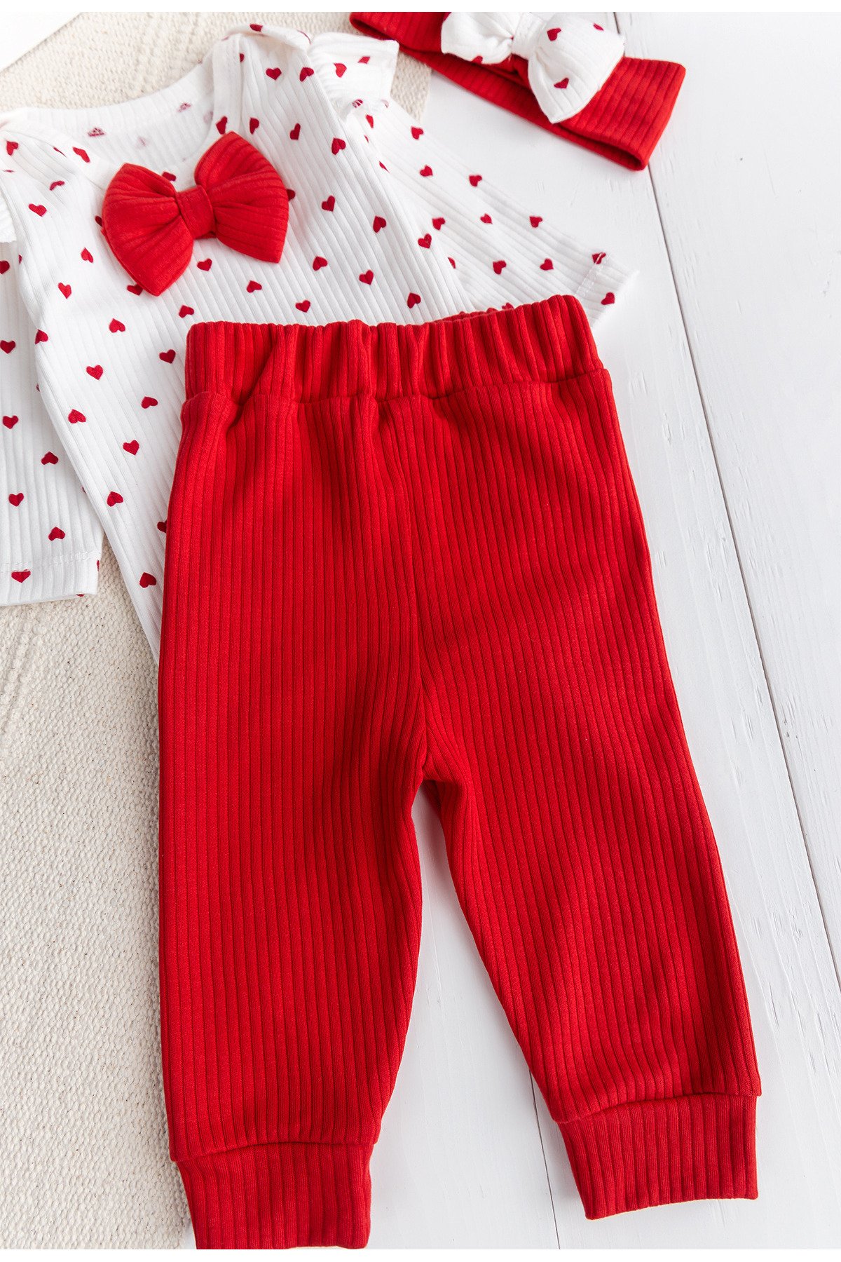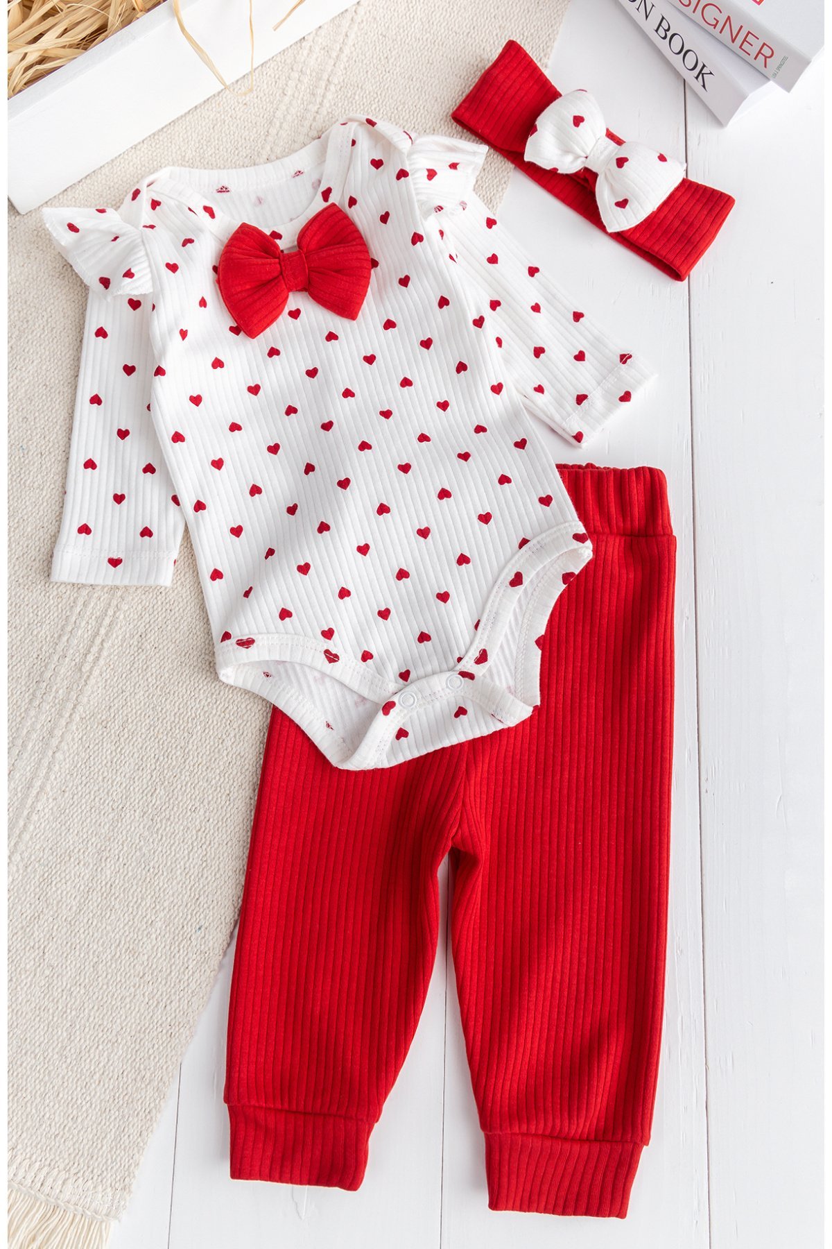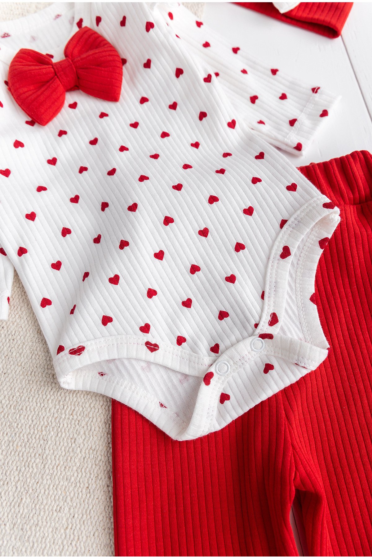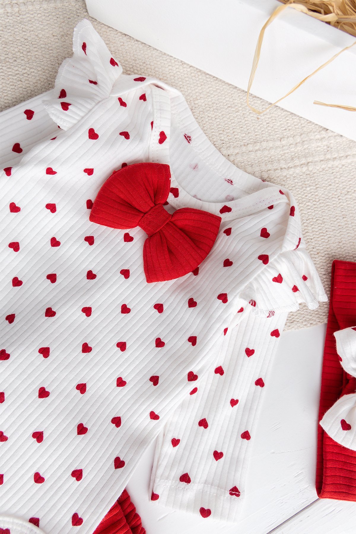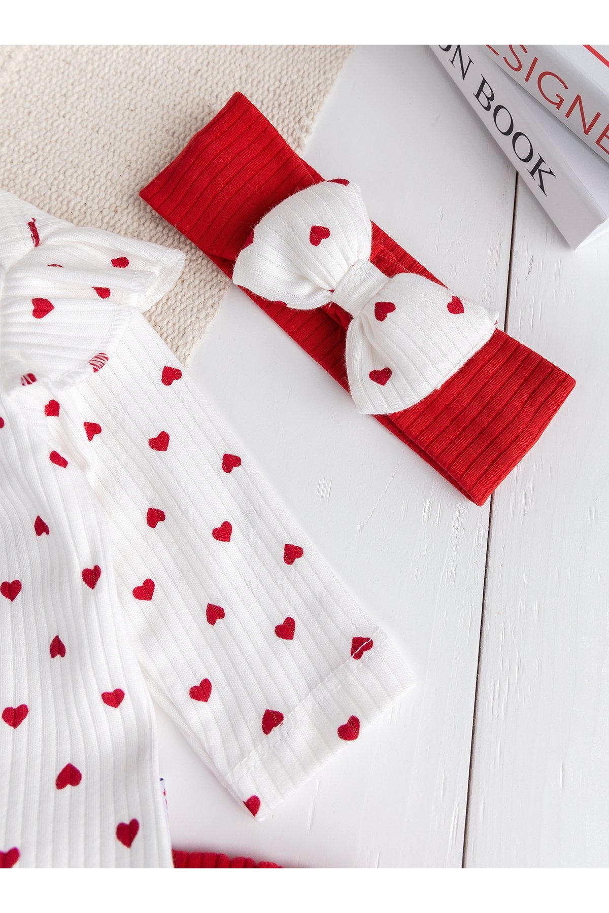 Minik Kalp Desenli Bandanalı 3'lü Kız Bebek Takım