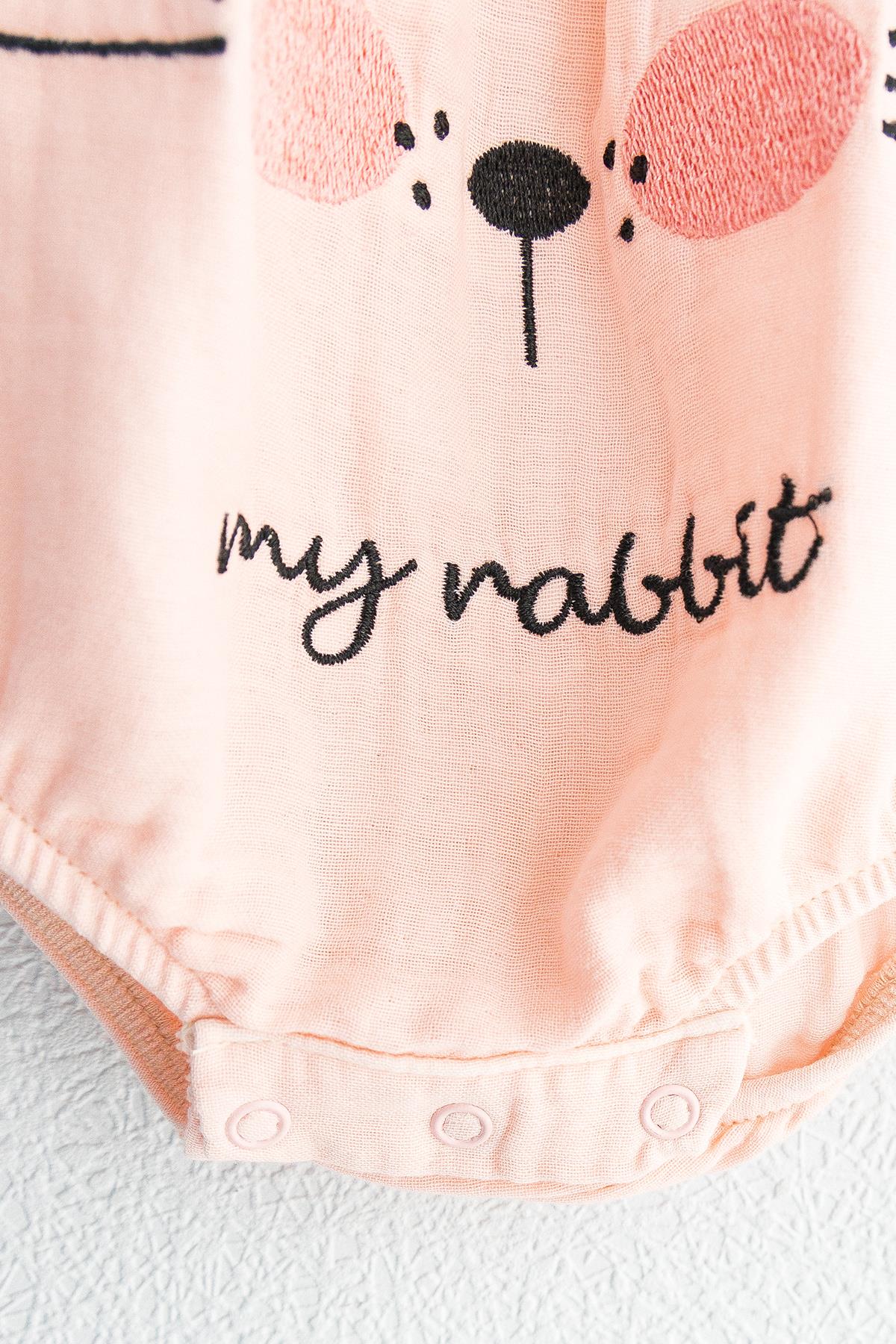 Minik Tavşan Kız Bebek Tulum Salopet Bebek Takım SOMON - 3-6 AY