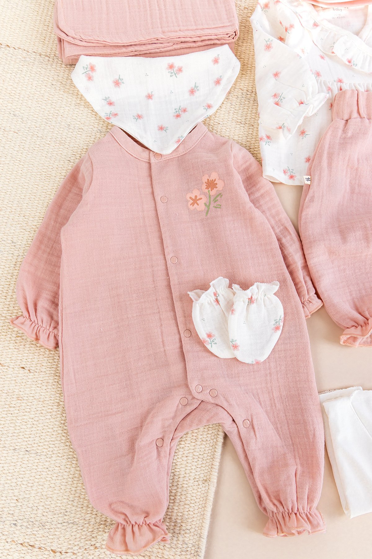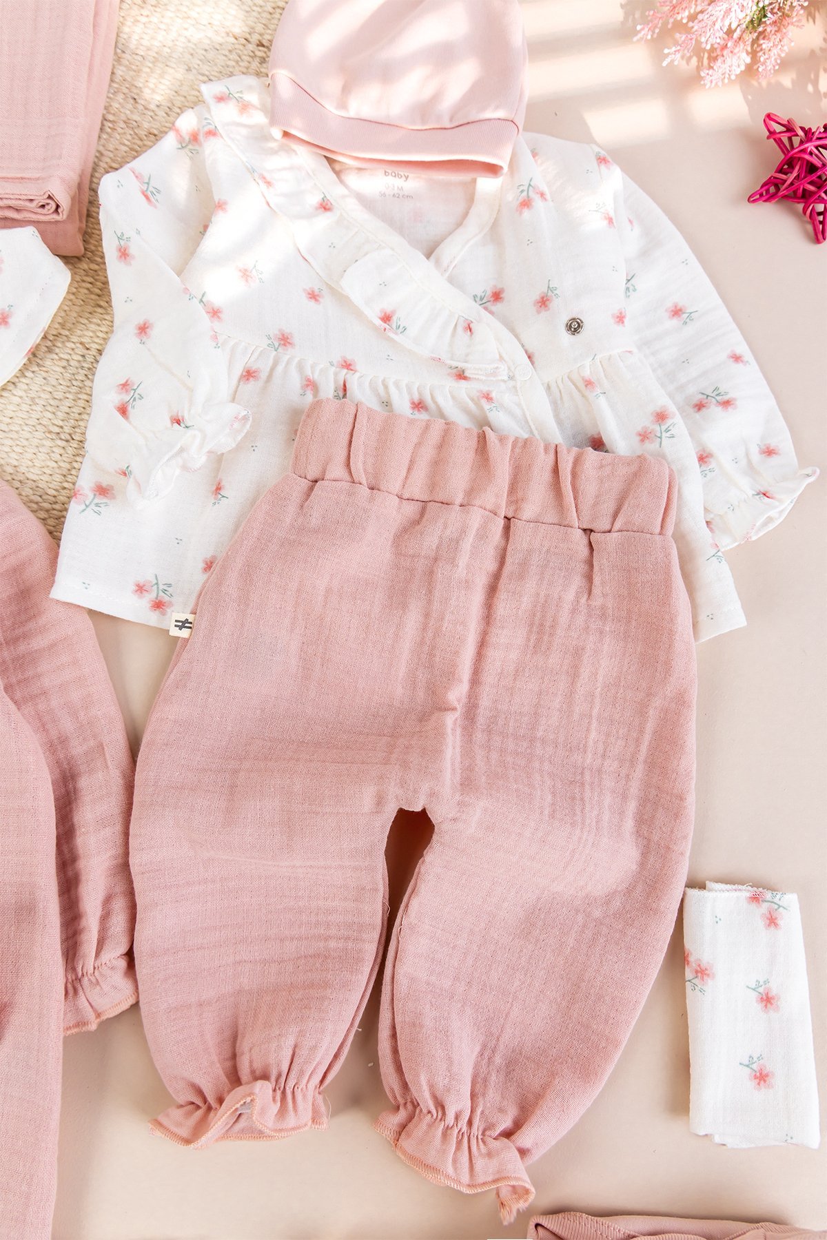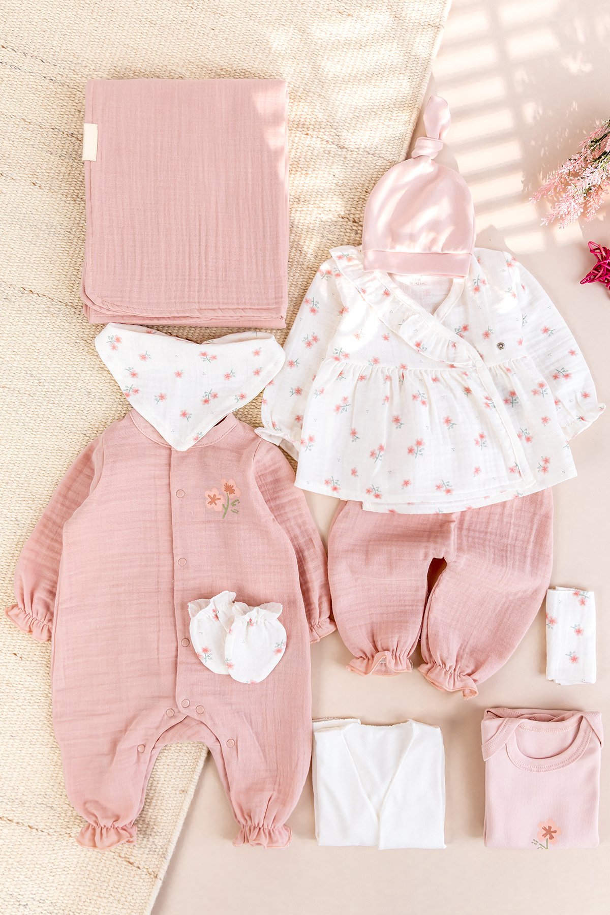 - Kız bebek 10'lu hastane çıkışı 100% pamuk yumuşsk dokulu müslin kumaştan üretilmiştir