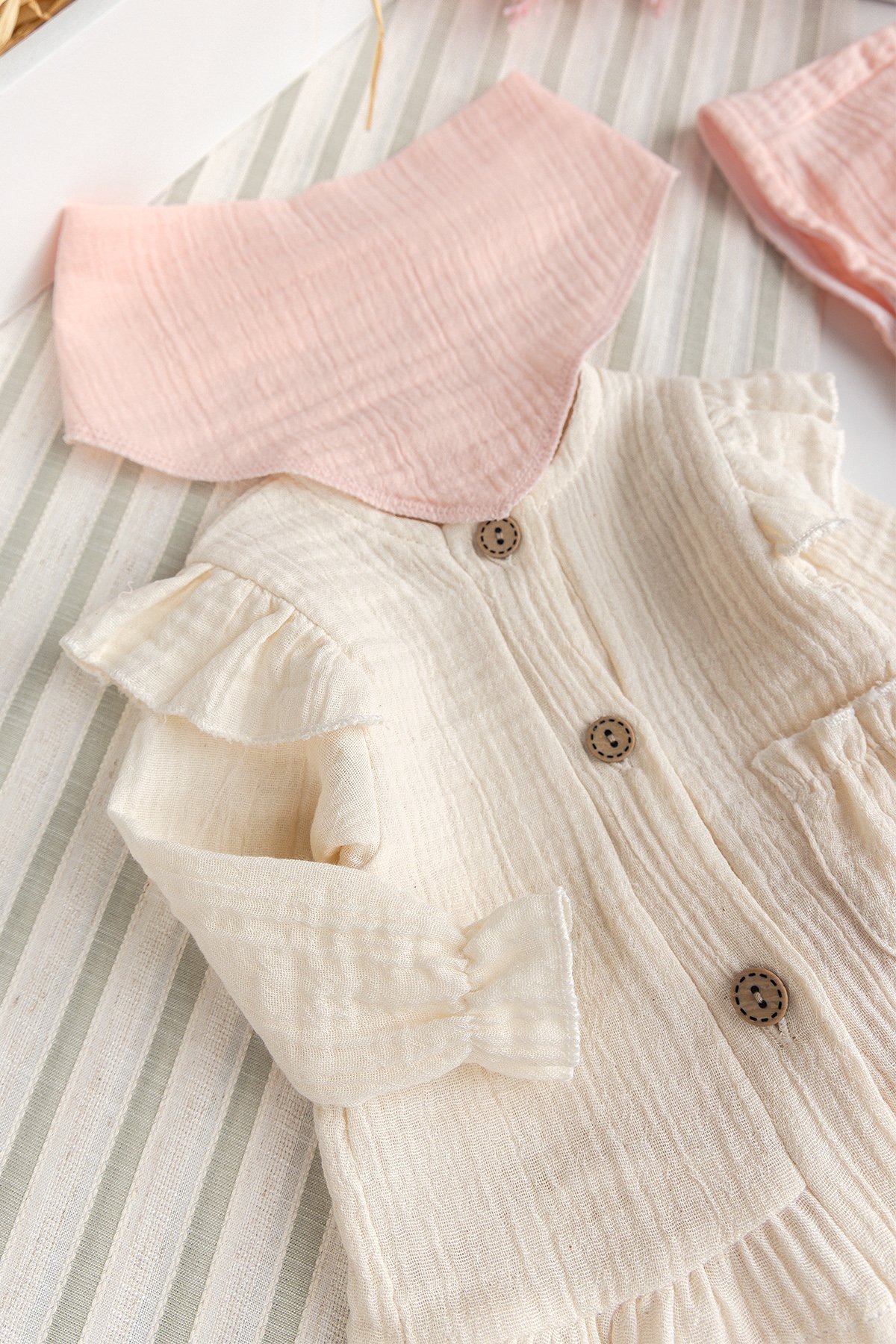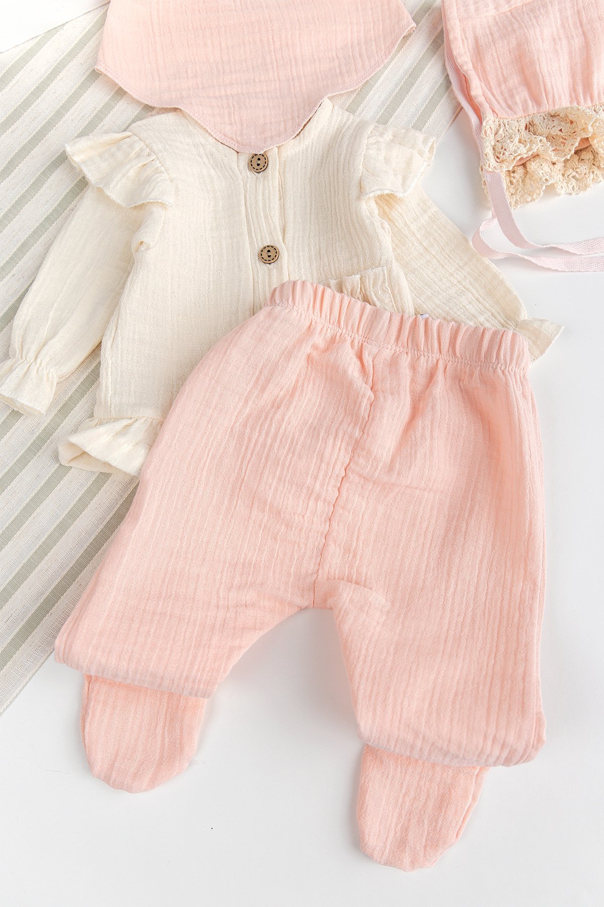 Müslin %100 Pamuk Kız Bebek 4 Parça Hastane Çıkışı Bebek Takımı