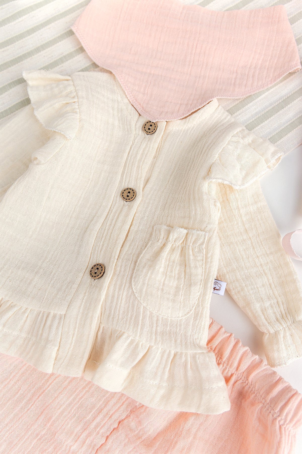 - This muslin baby set, carefully designed to maximize your baby's comfort in the first days after birth, provides softness and breathability with its 100% cotton fabric.
