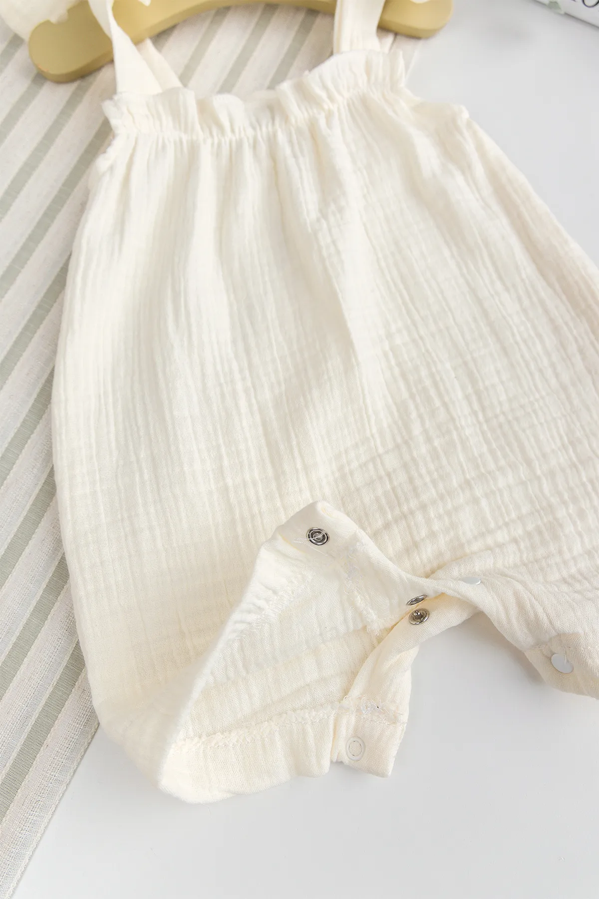 - This rope strap summer jumpsuit, which is friendly to your baby's sensitive skin thanks to its soft muslin fabric made of 100% cotton, is ideal for hot summer days.