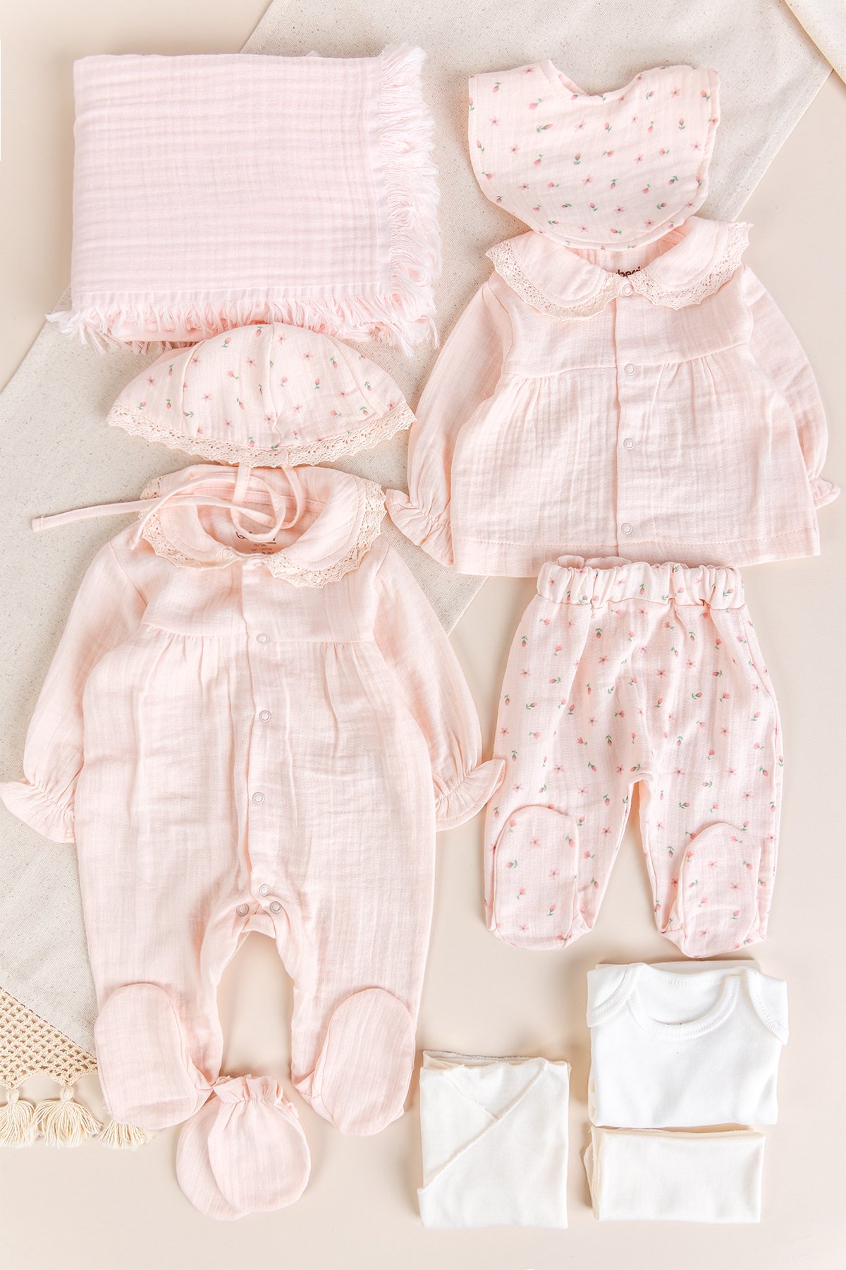 Müslin Premium Kalite 100% Pamuk 10'lu Kız Bebek Hastane Çıkışı