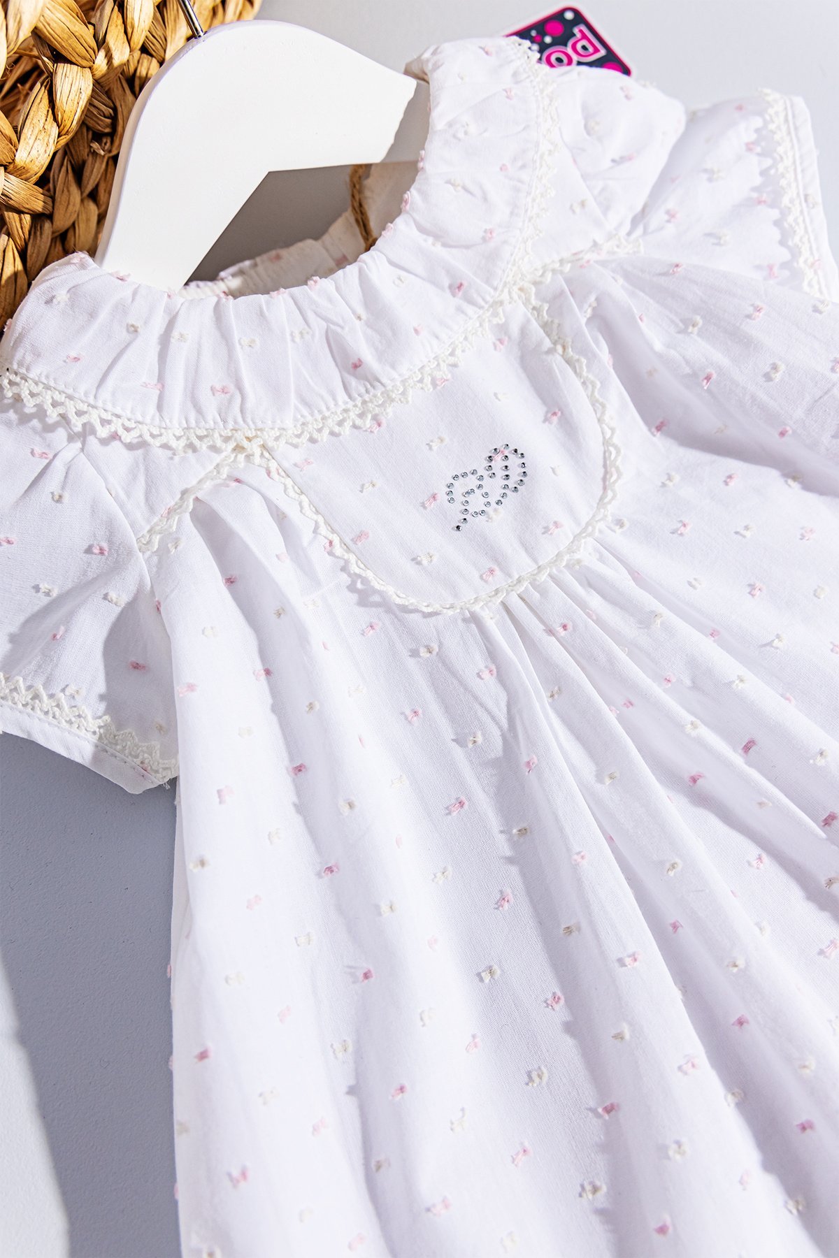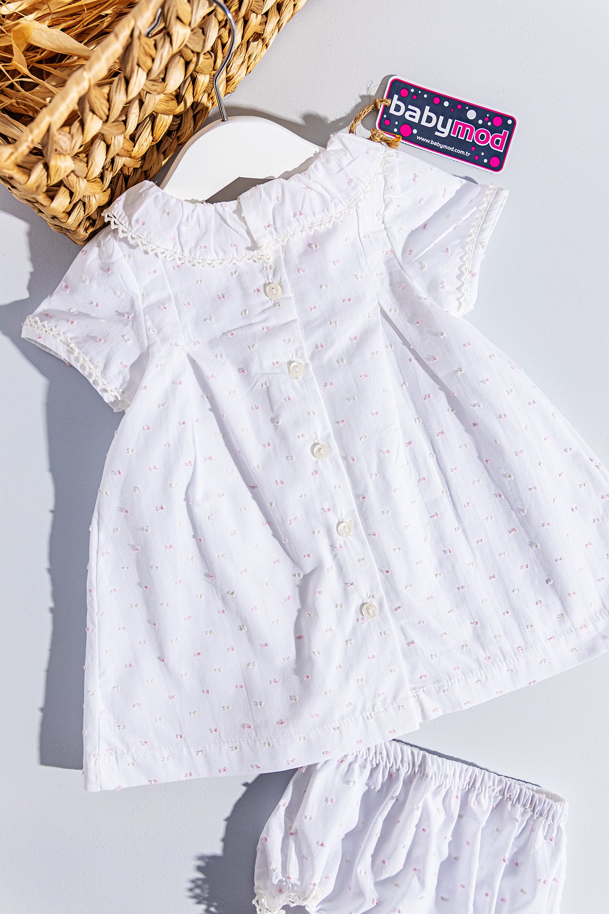 Natural Bebek Elbise Yaka Detaylı Kız Bebek Elbise