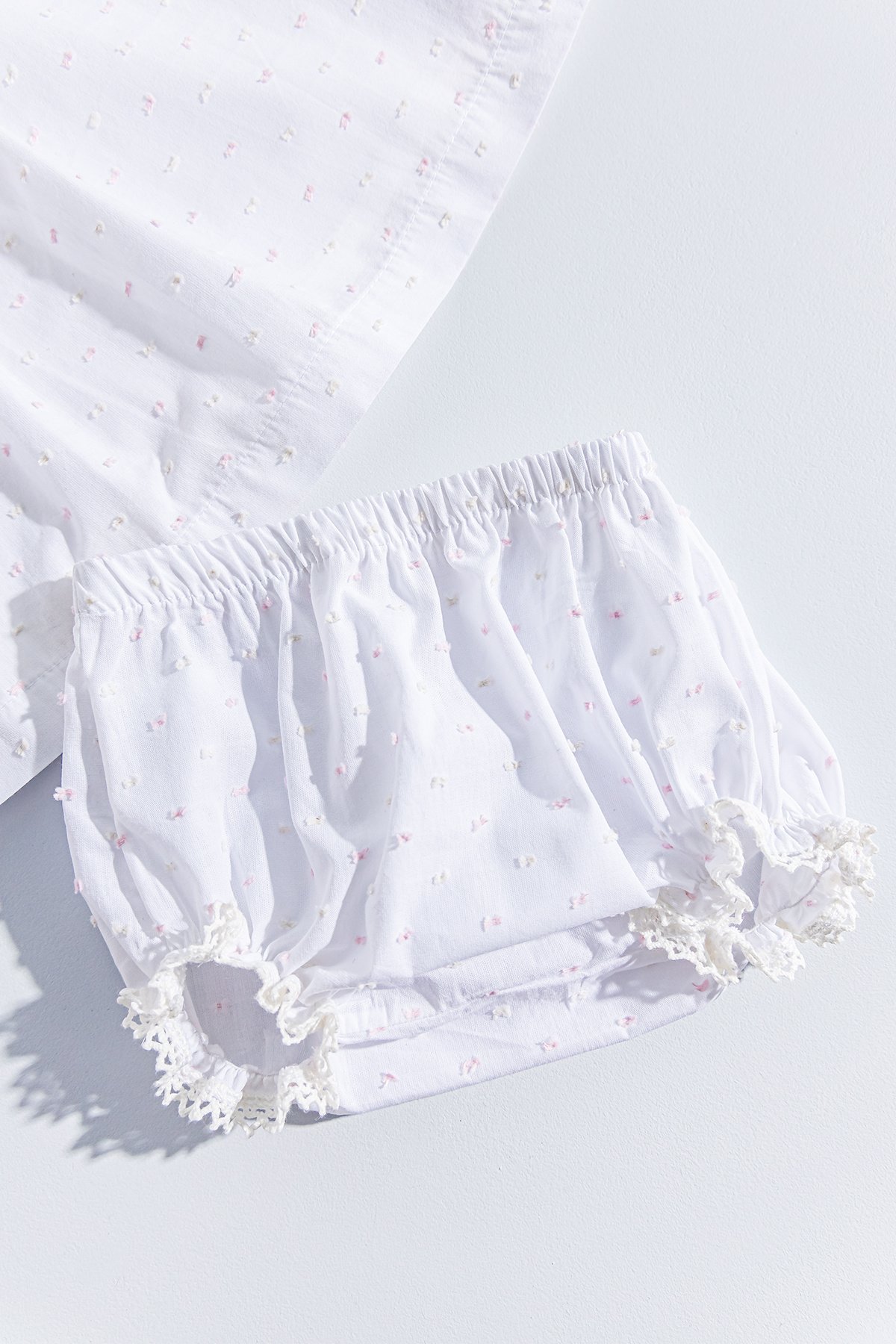 - Çamaşırın bacak kısımları lastik büzgülüdür ve dantel süslemelidir.