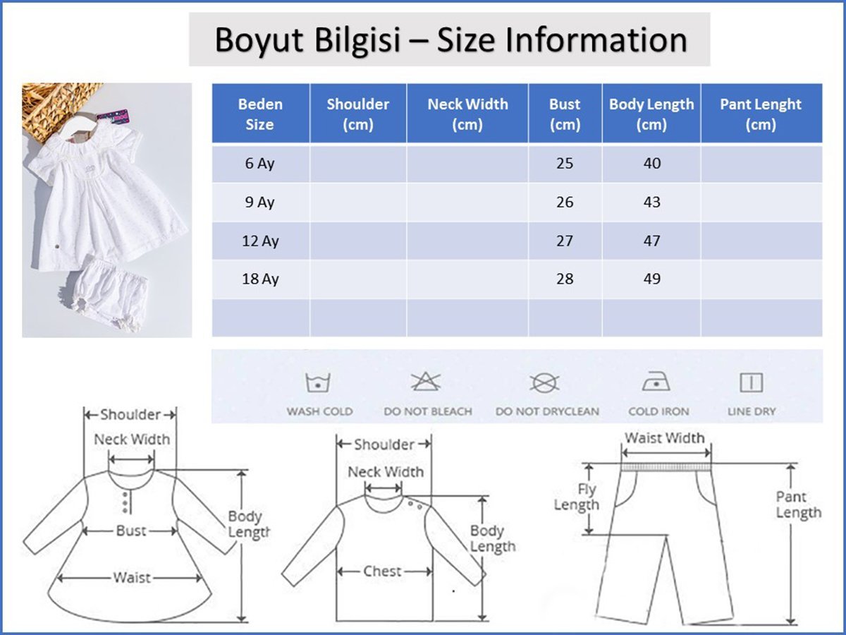 - Görselde kullanılan ürün bedeni 6 Ay bedendir.