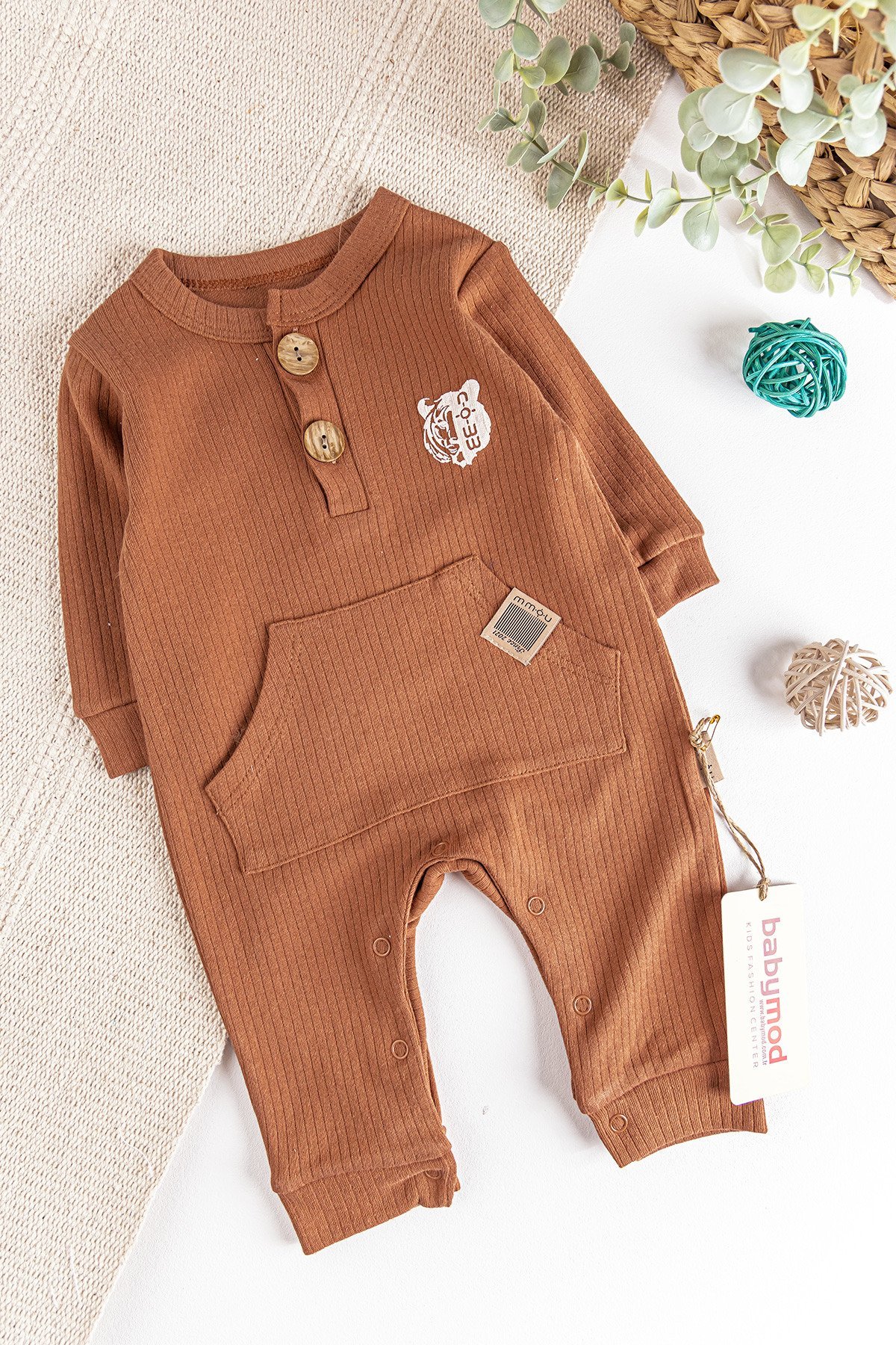 Natural Kaplan Figürlü Erkek Bebek Tulum