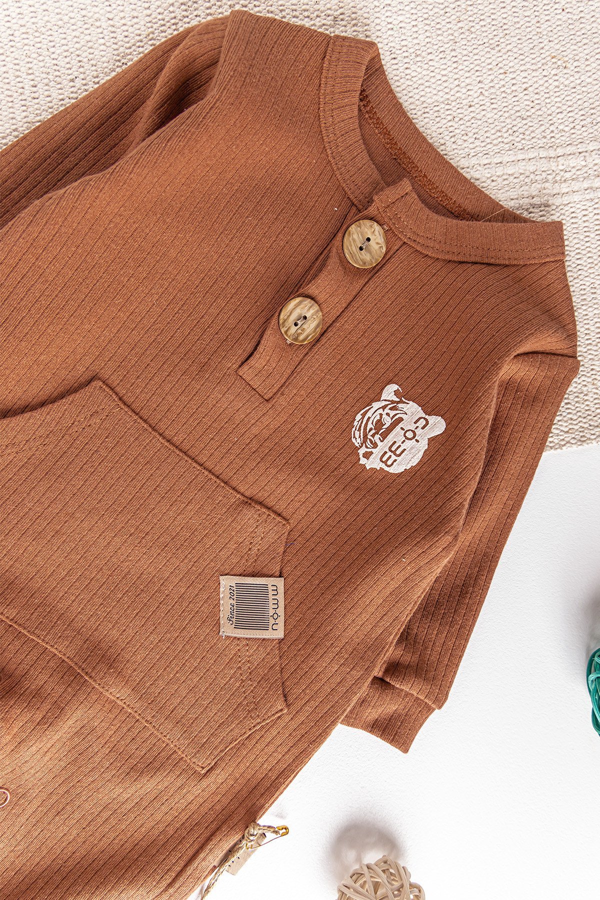- Bebek tulumun yaka kısmı çift düğmelidir.