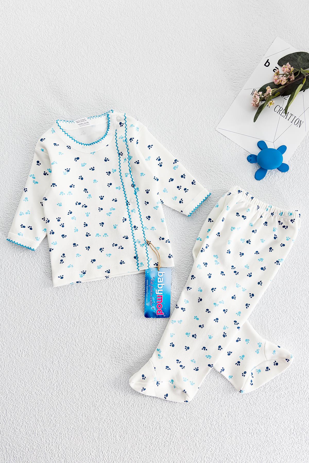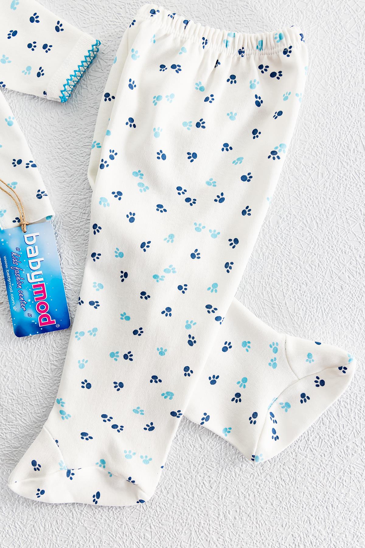 Önden Çıt Çıtlı Pati Desenli İkili Bebek Takımı