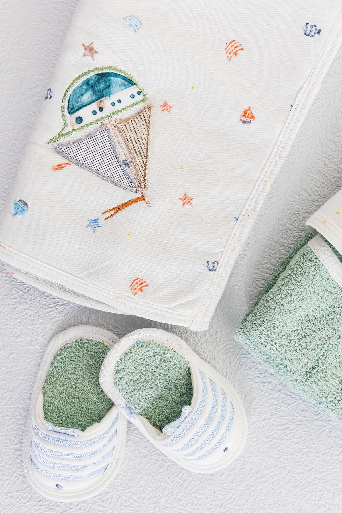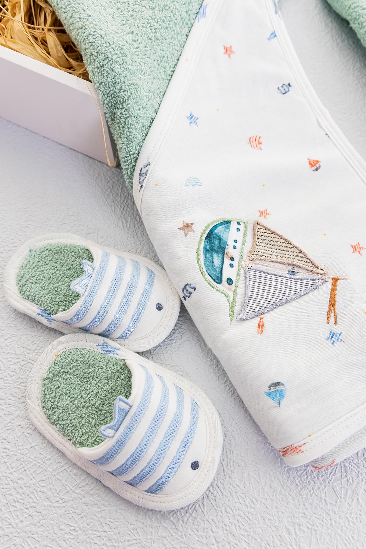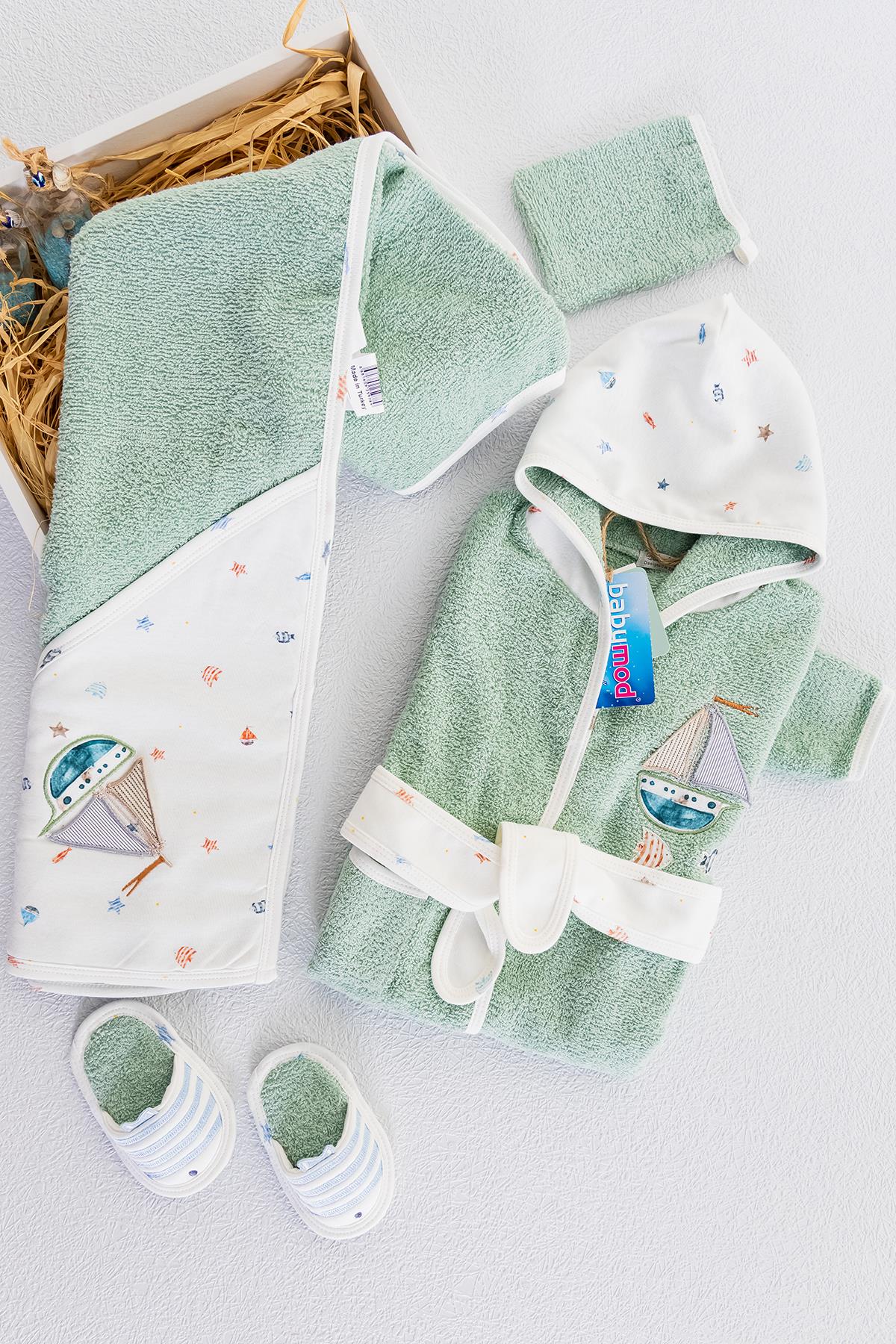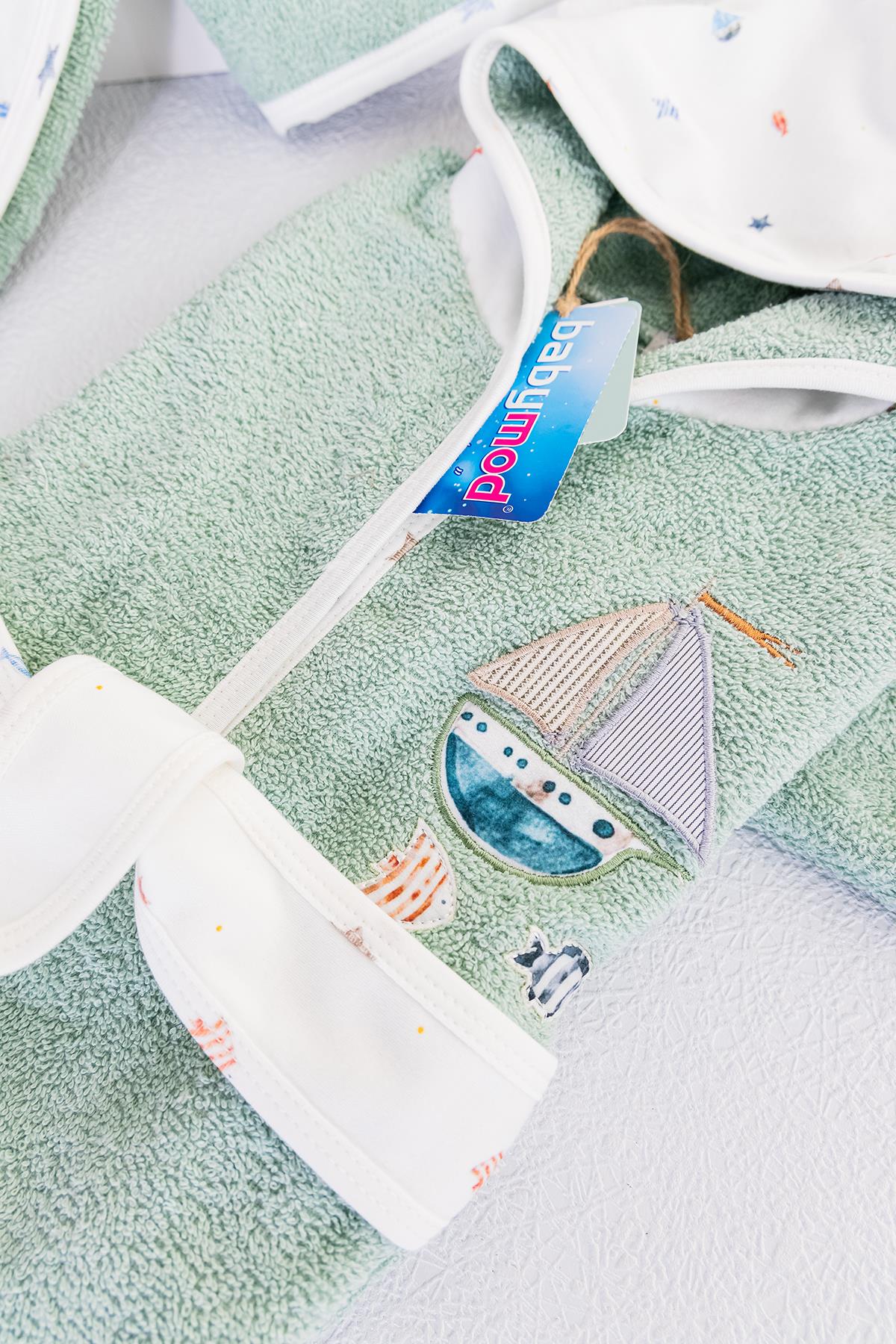 Organik Denizci Temalı Erkek Bebek Havlu Bornoz Seti