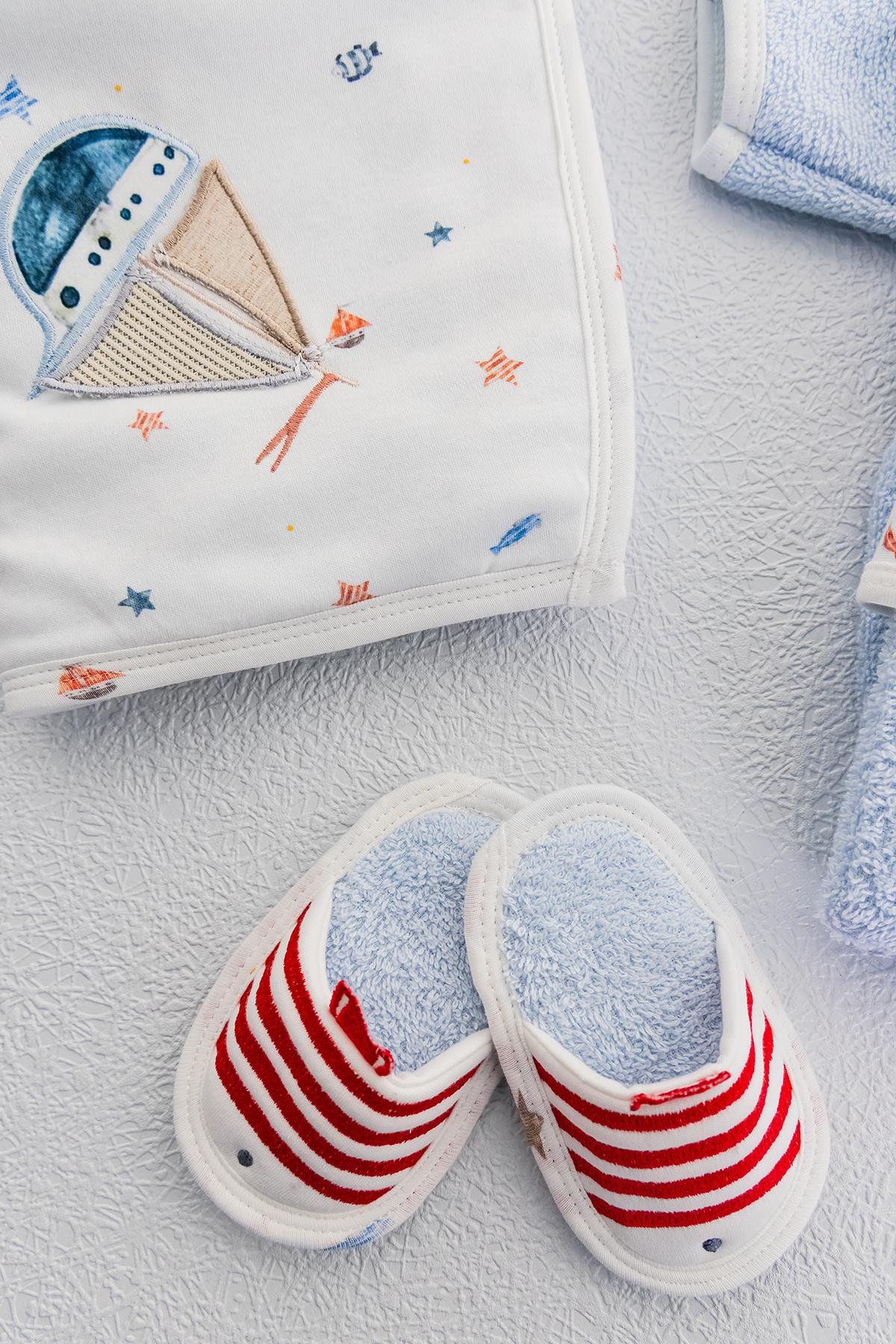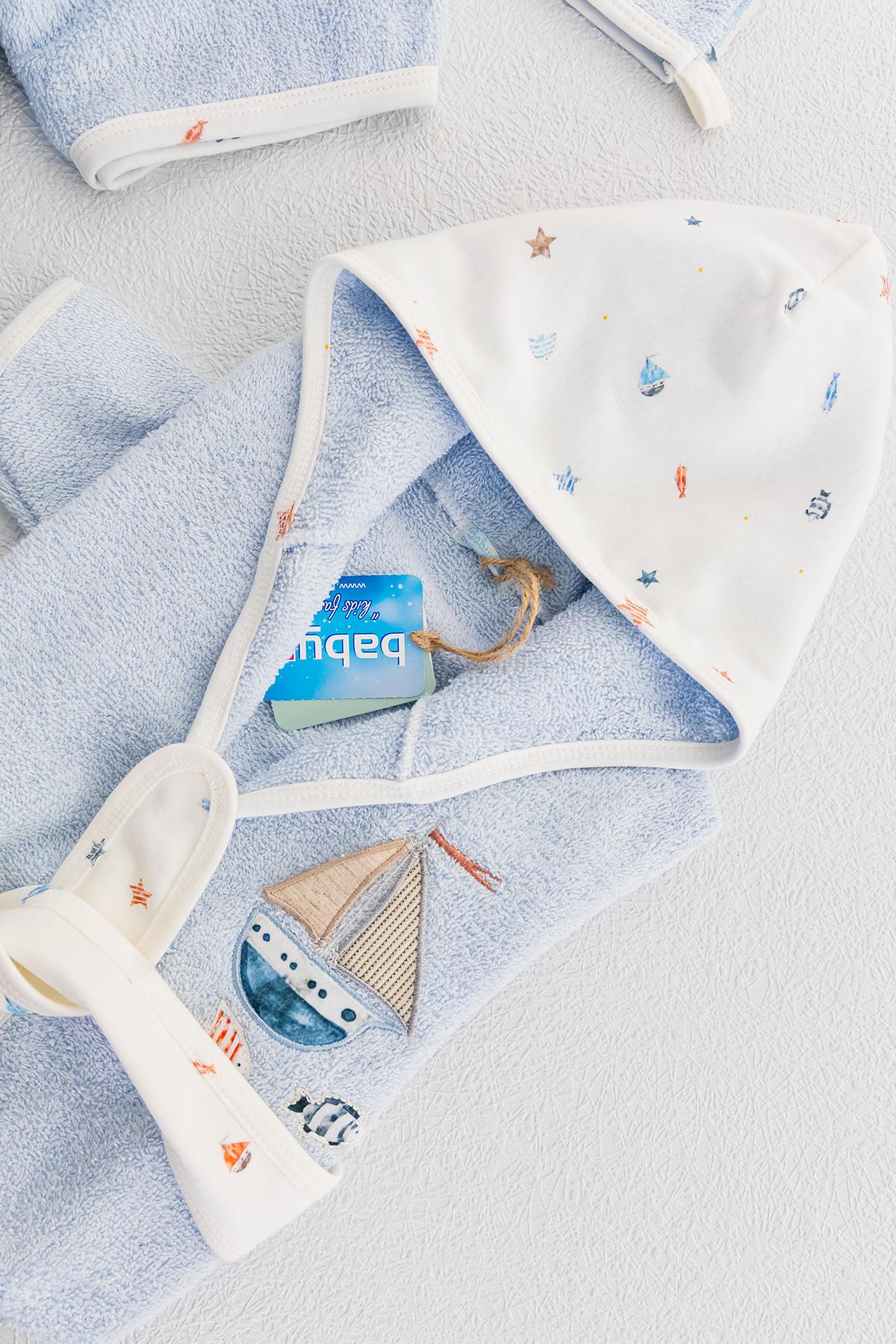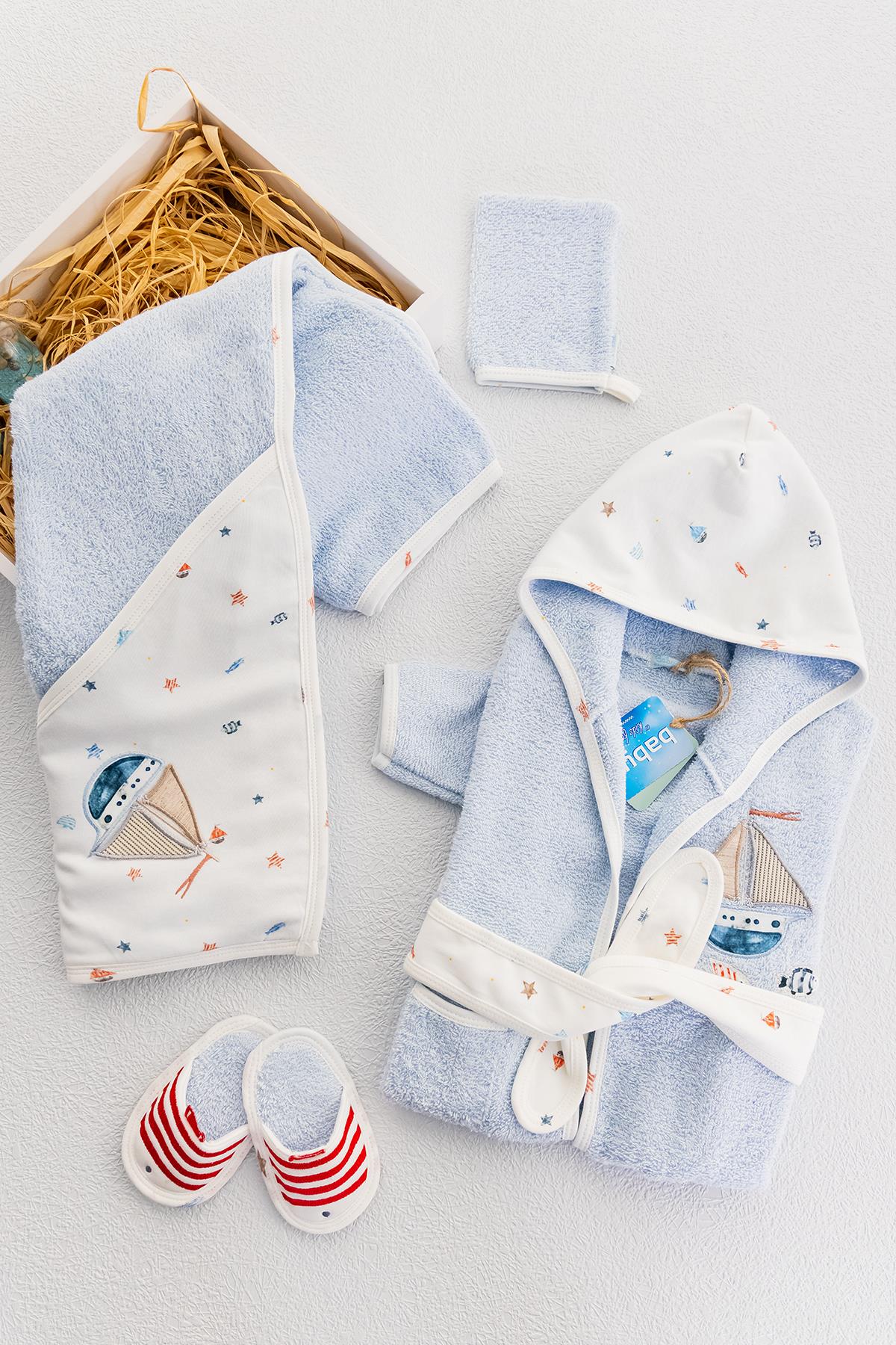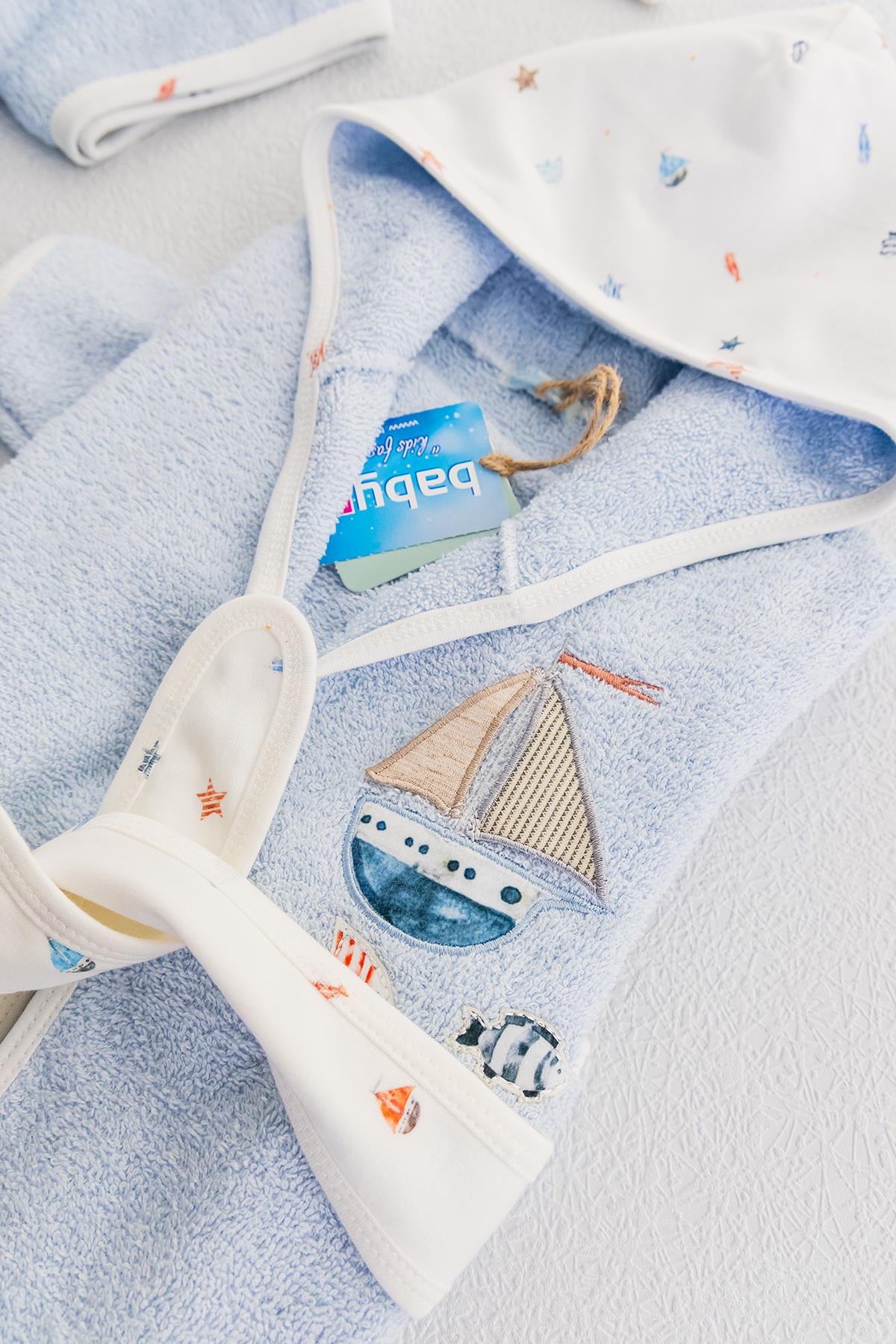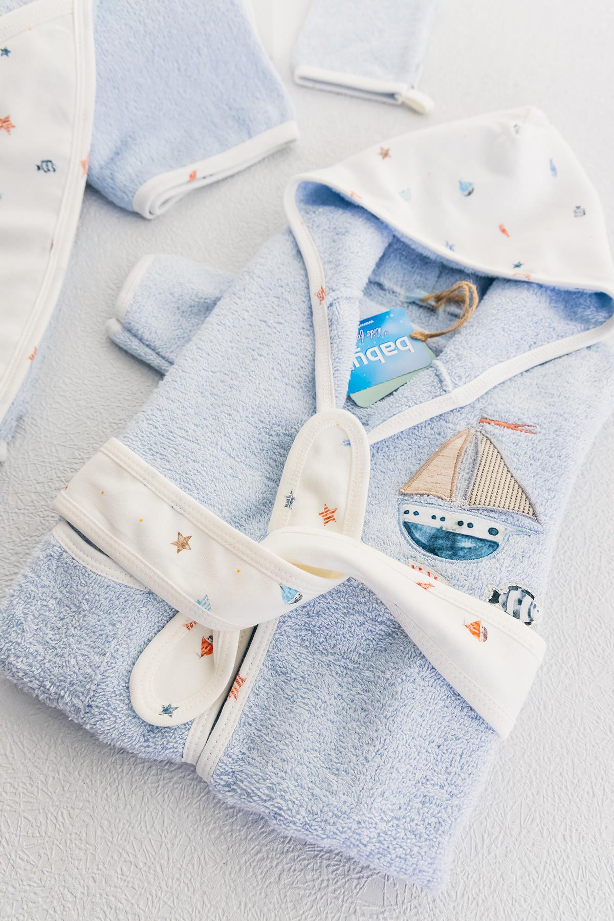 Organik Denizci Temalı Erkek Bebek Havlu Bornoz Seti