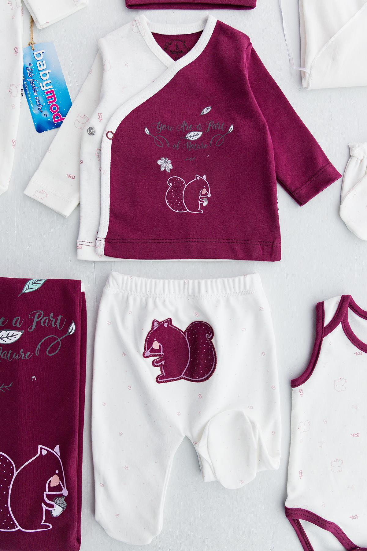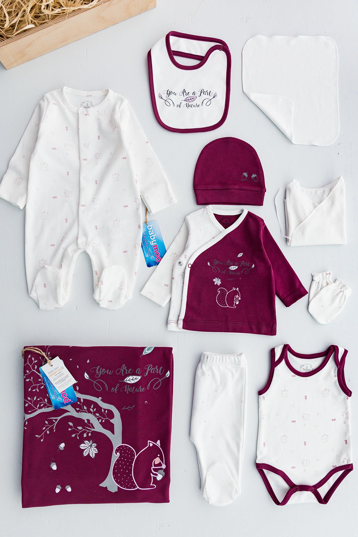 Organik Sincap Figürlü 10 Parça Bebek Hastane Çıkışı Bebek Seti